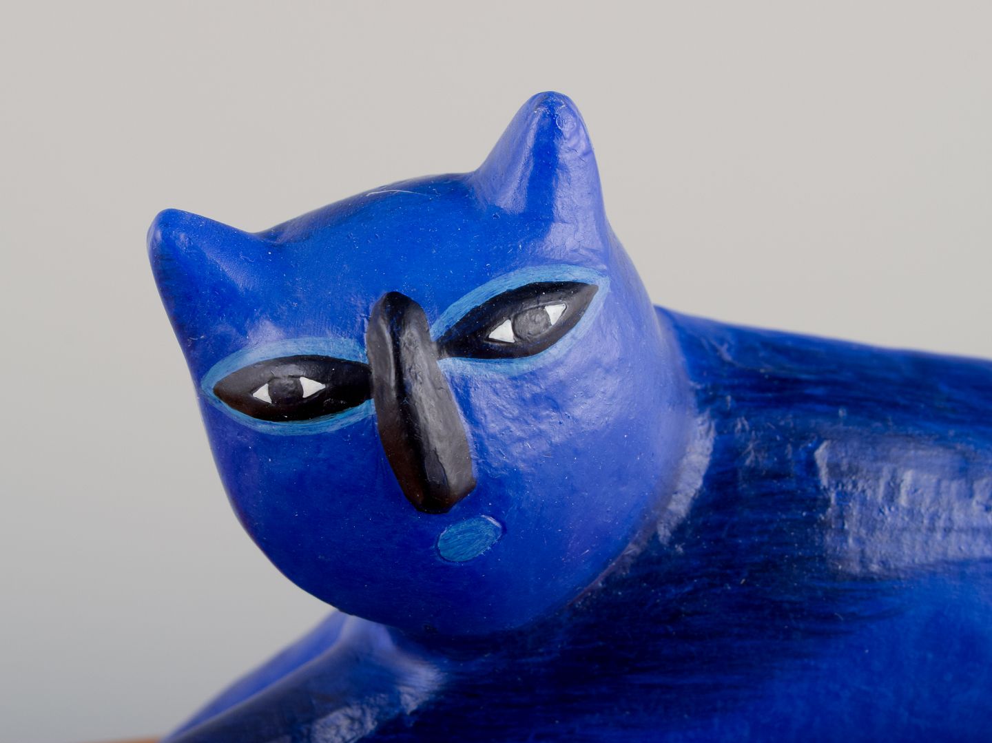 Blå kat (proptrækker) og to røde fugle (monteret på korkpropper).