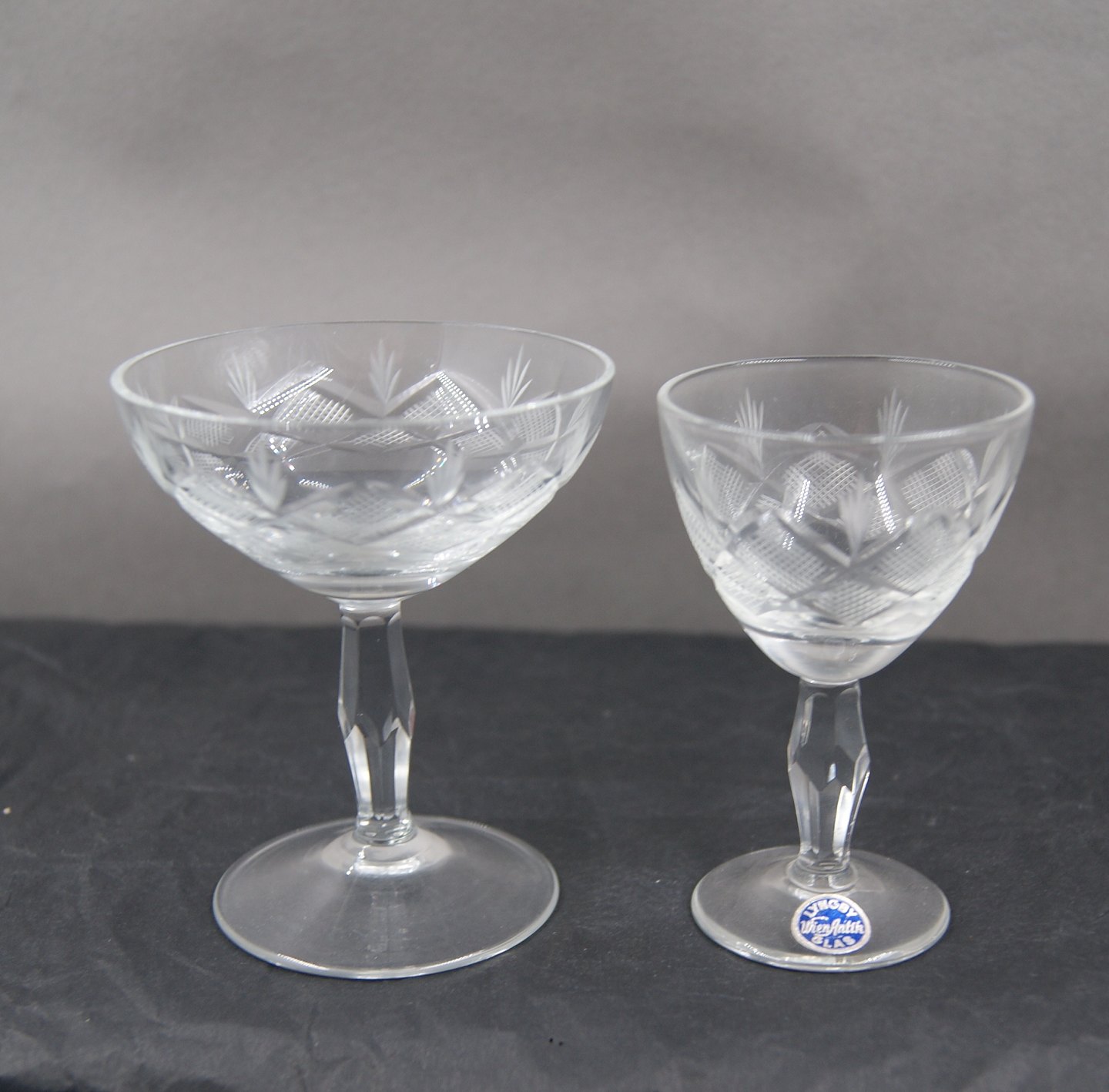 Wien Antik glas med knop på facetslebet stilk fra Lyngby Glasværk.