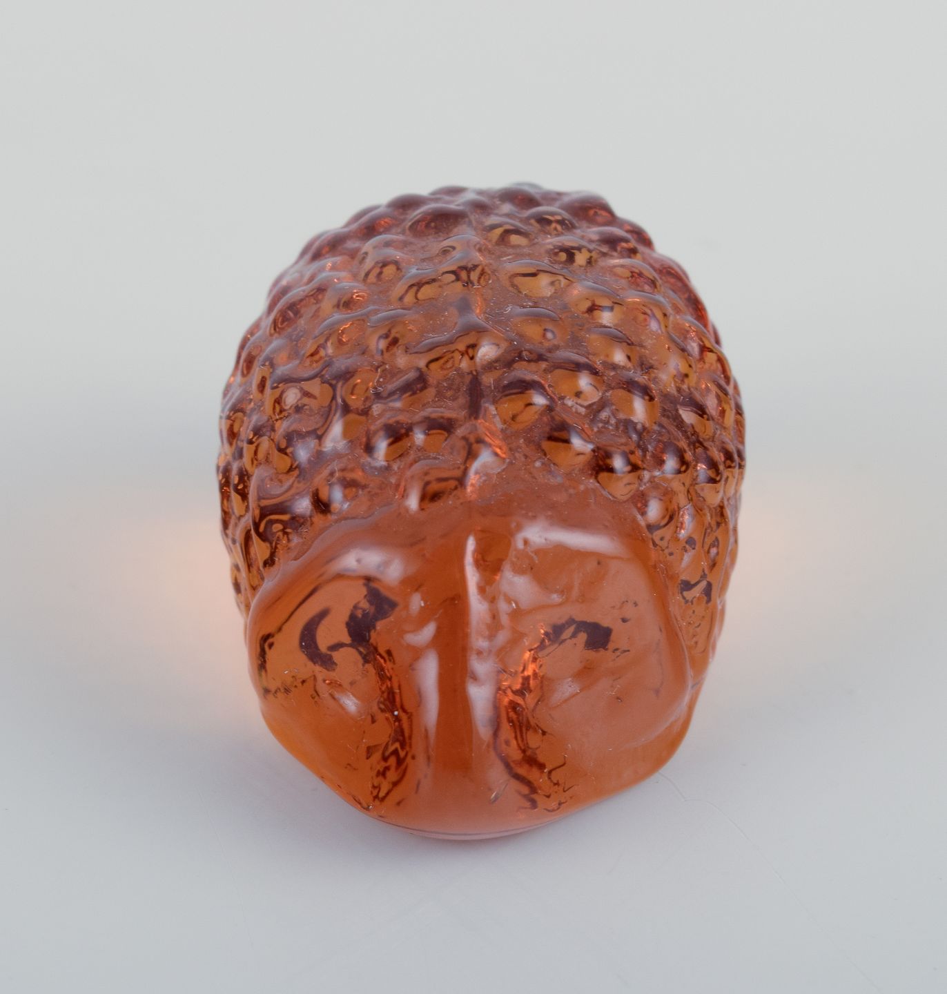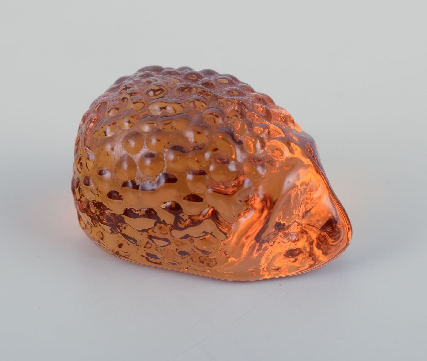 Pindsvin i ravfarvet glas: L 4,5 cm. x B 2,6 cm. x H 2,5 cm.