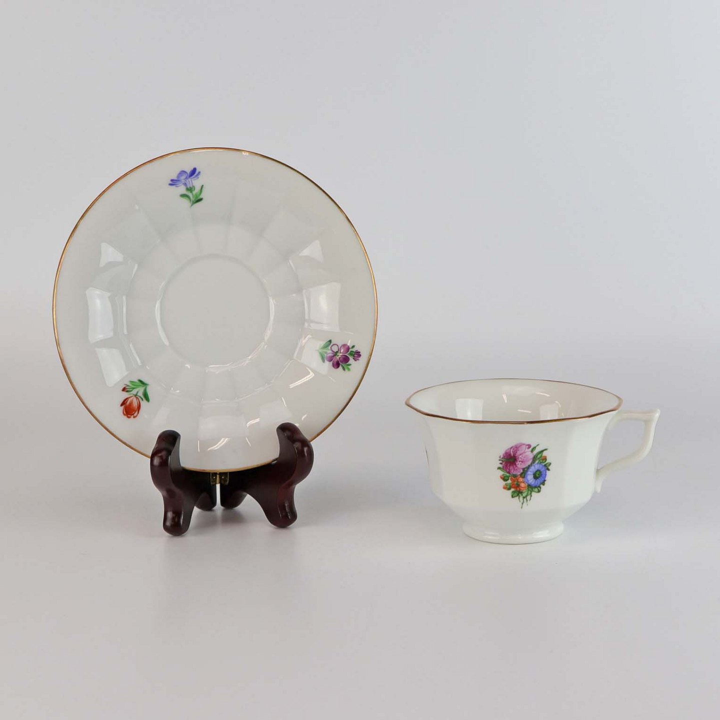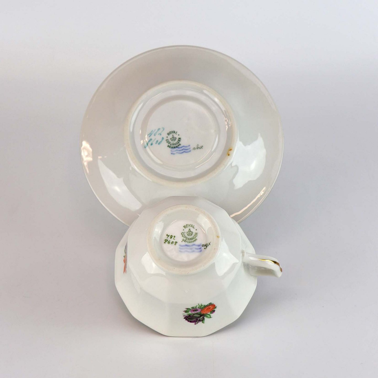 Kongelig kaffekop med underkop i porcelæn fra stellet Strøblomst nr. 482/8608