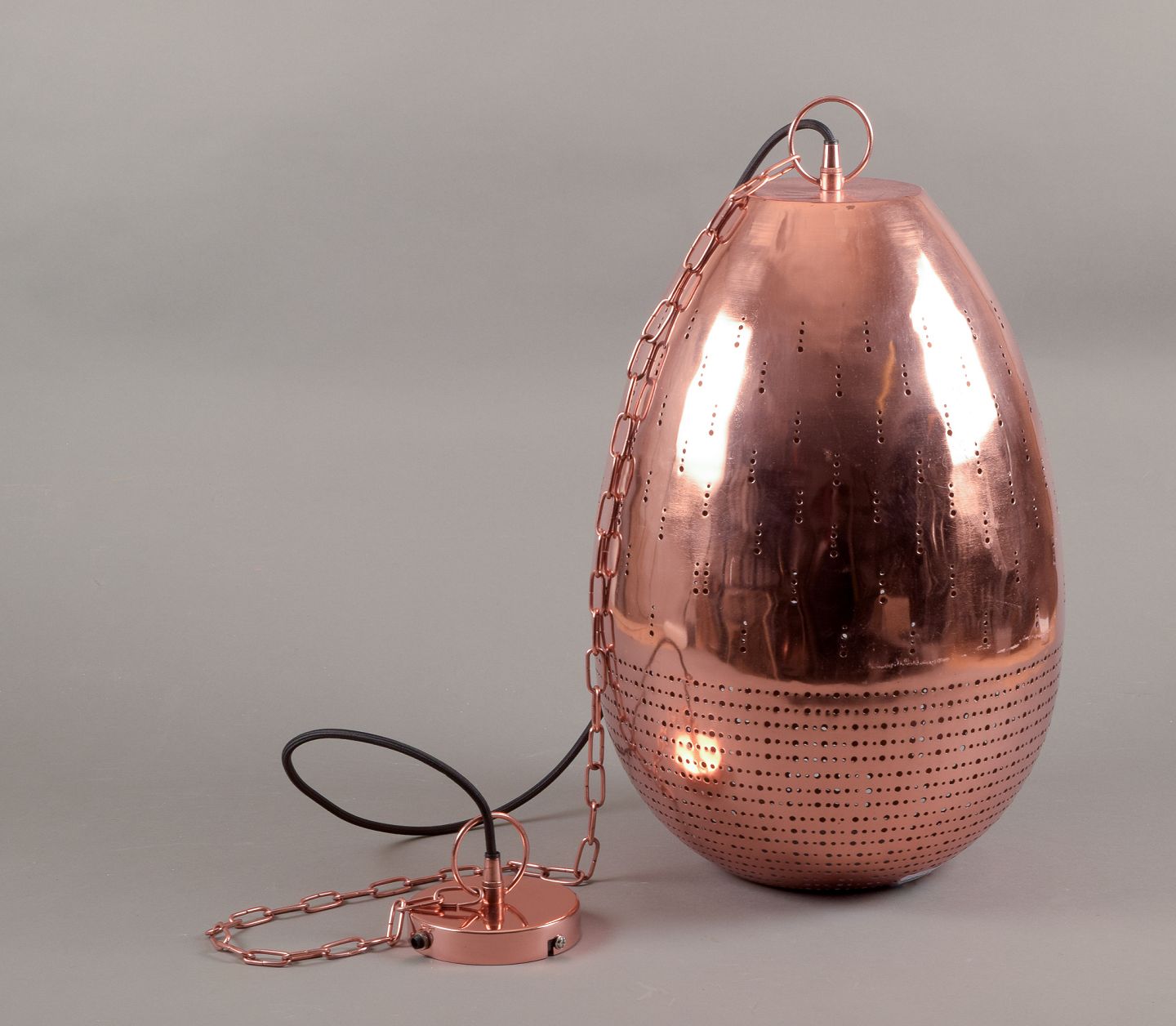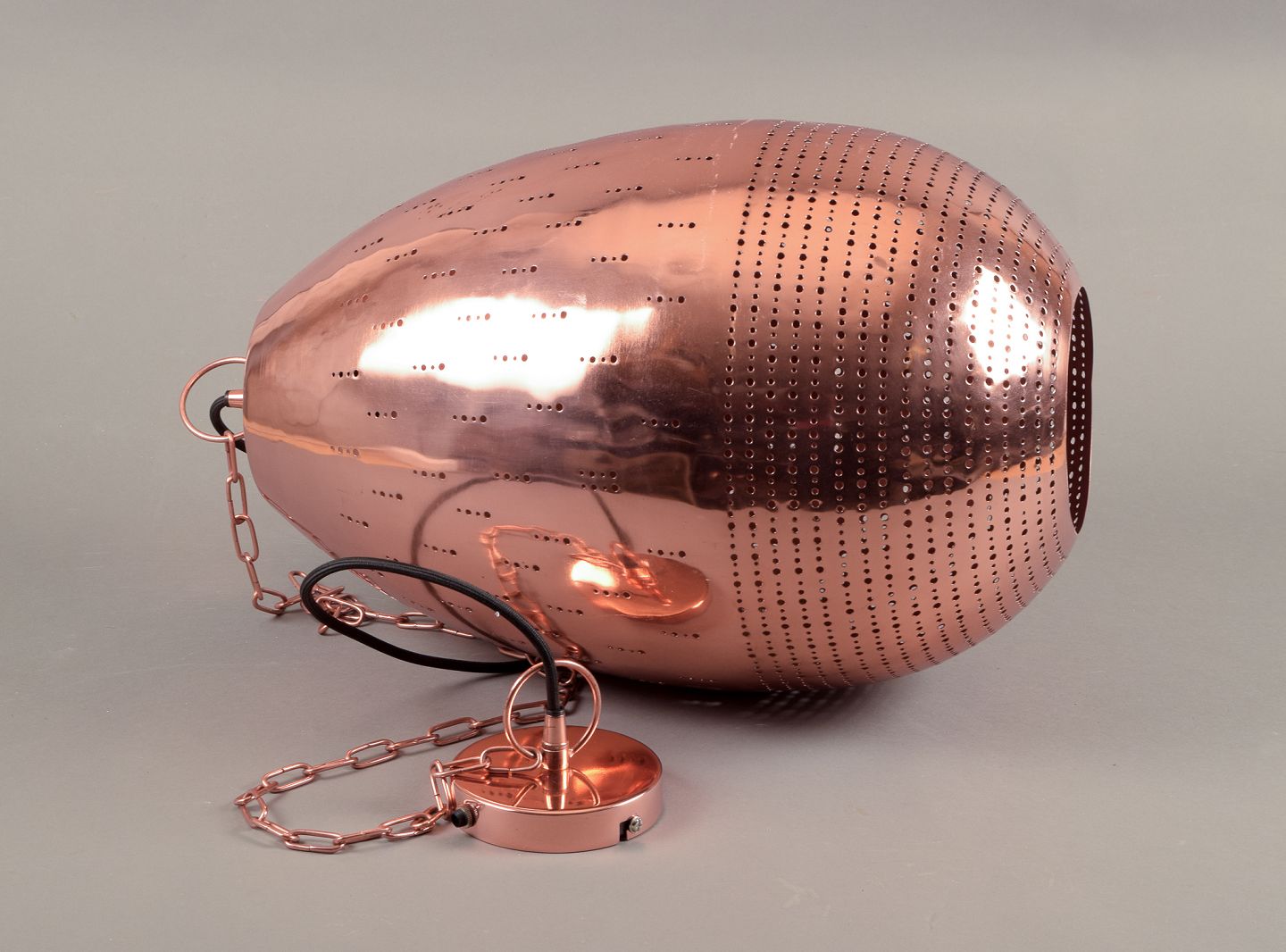 Hedemann, Danmark. Stor ”Chili” loftspendel i kobberpatineret metal.