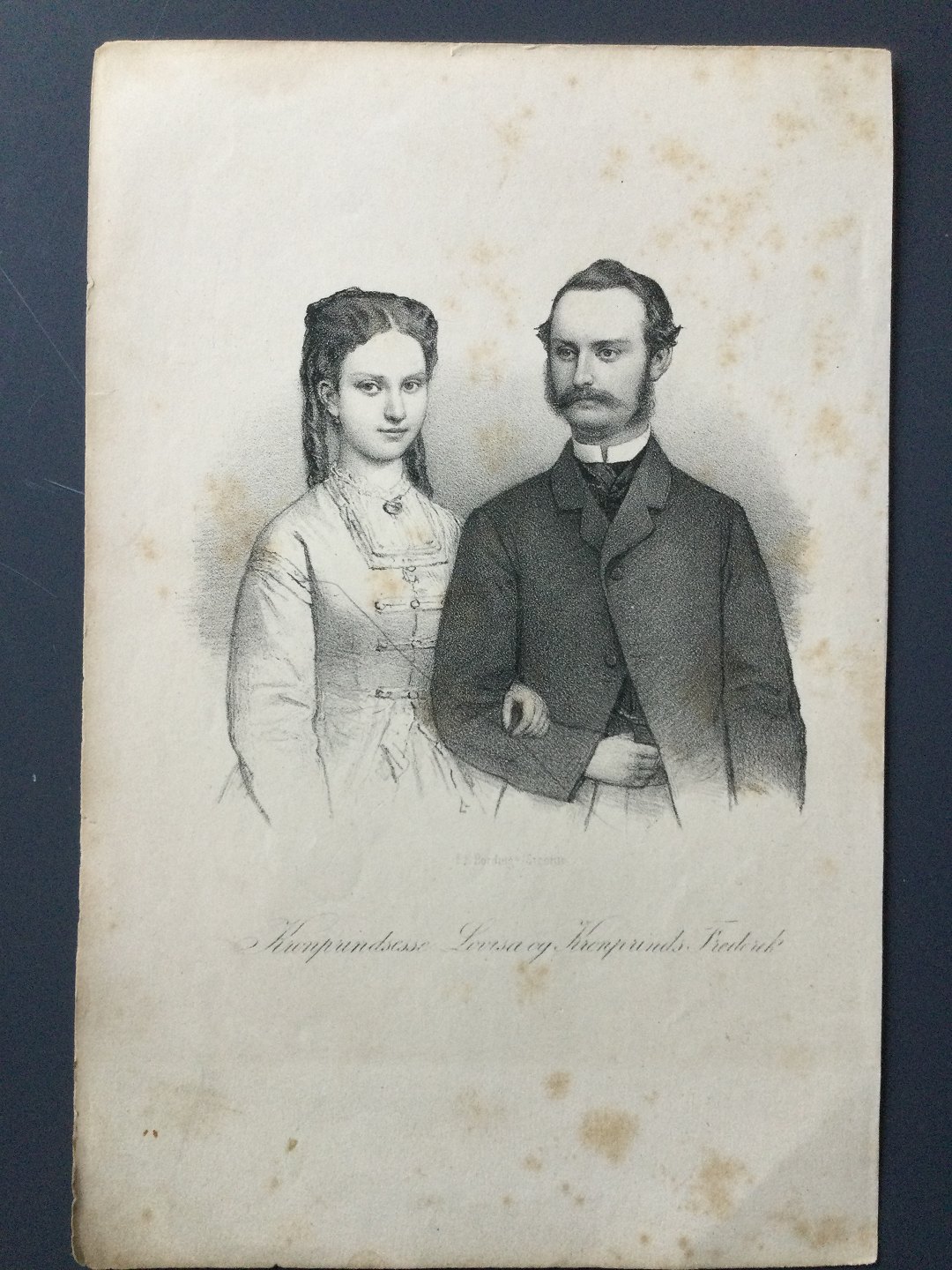 Litografi af F.E. Bording - Portræt af DKH Kronprinsesse Louisa og Kronprins Frederik af danmark ved deres forlovelse i 1869.
