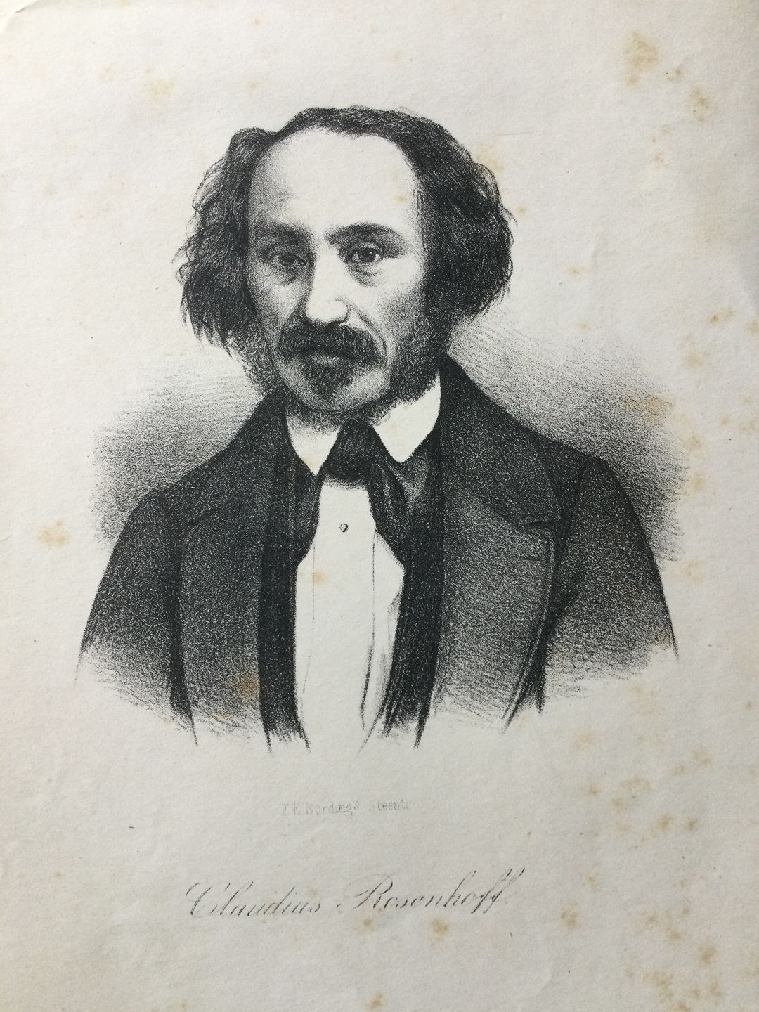 Litografi af F.E. Bording - Portræt af forfatteren Claudius Rosenhoff (1804-69)
