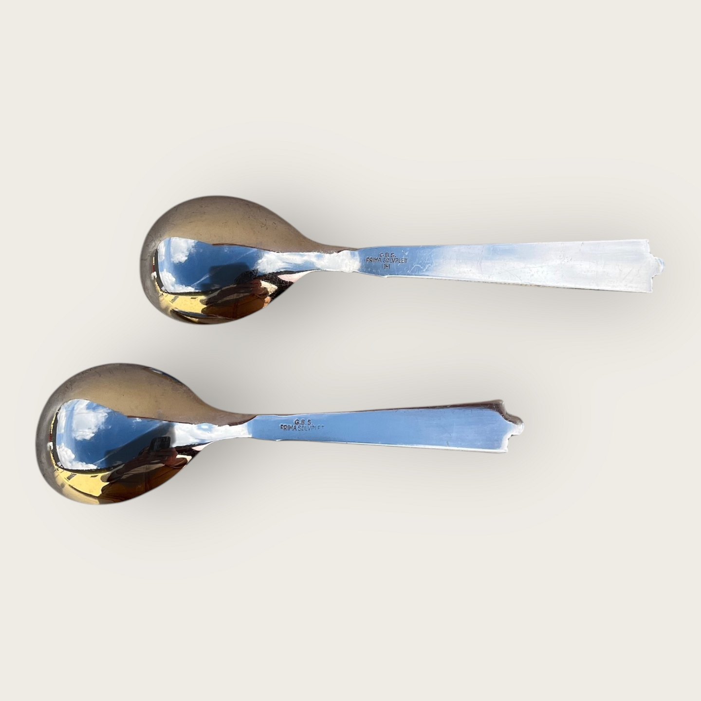 G.B.S. "Prima", Sølvplet, Kompotske sæt med 2 stk. 13cm lang, 15cm lang *Pæn stand*