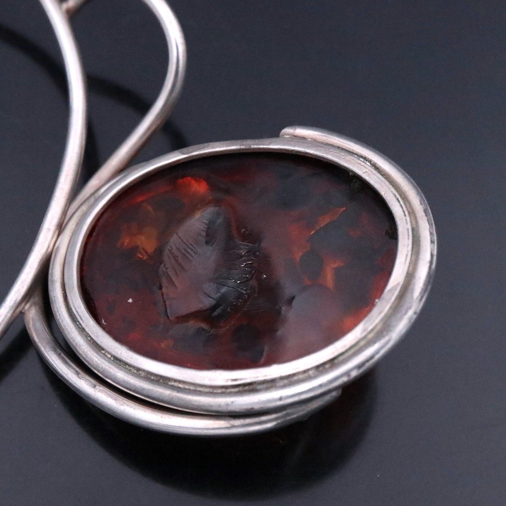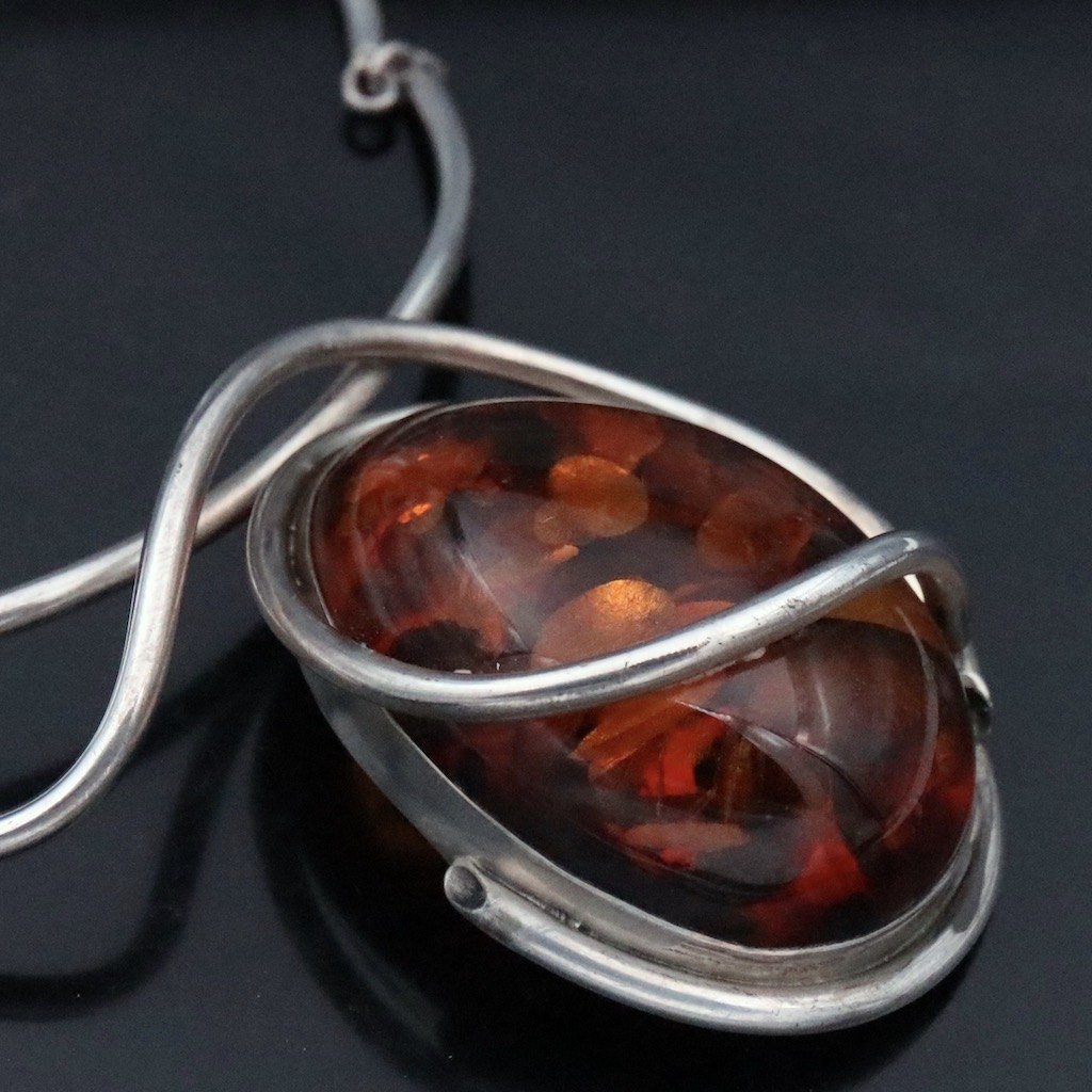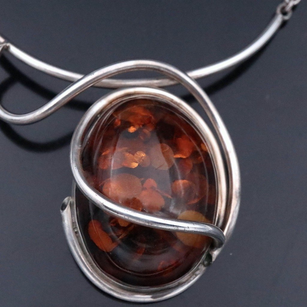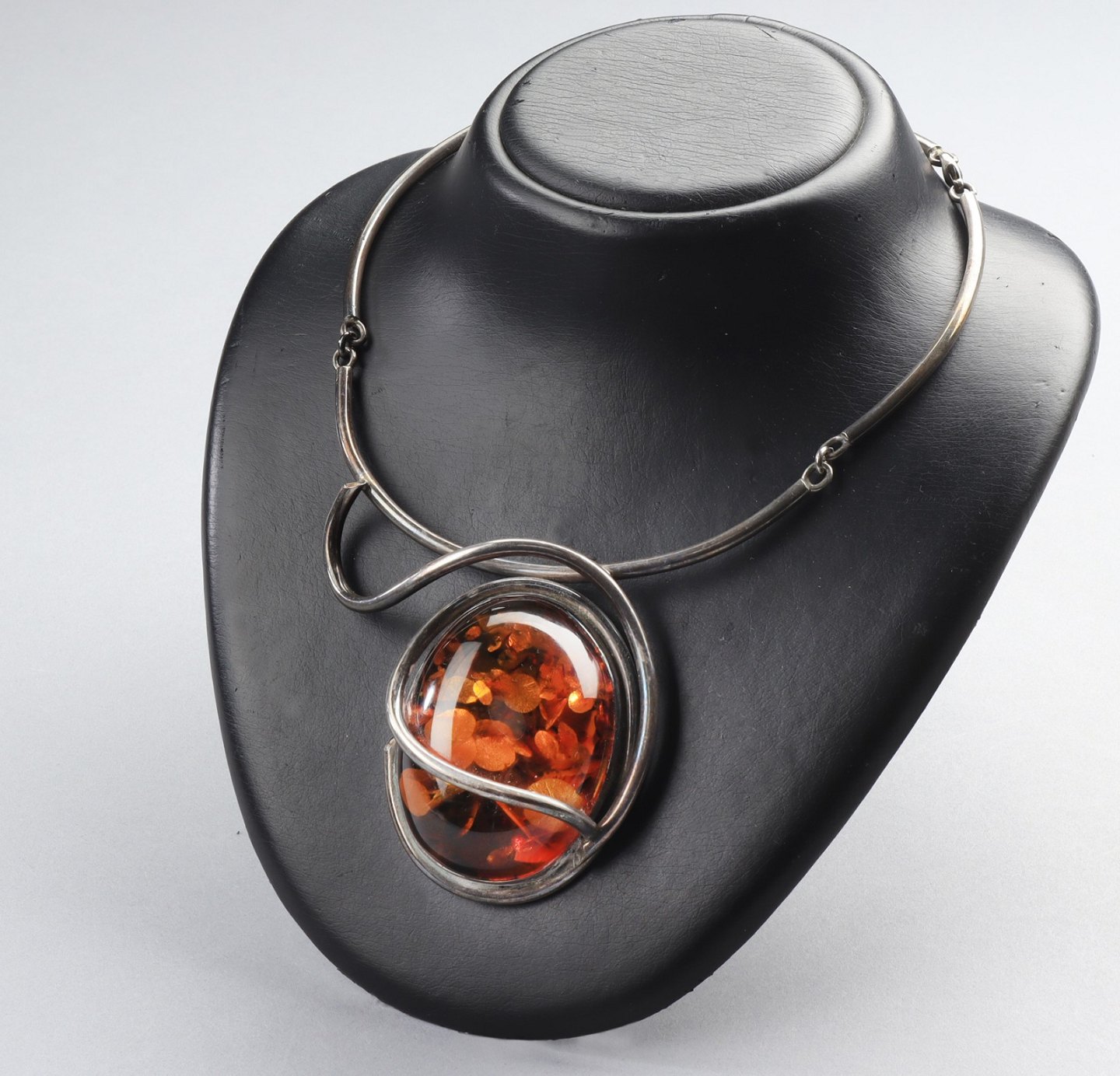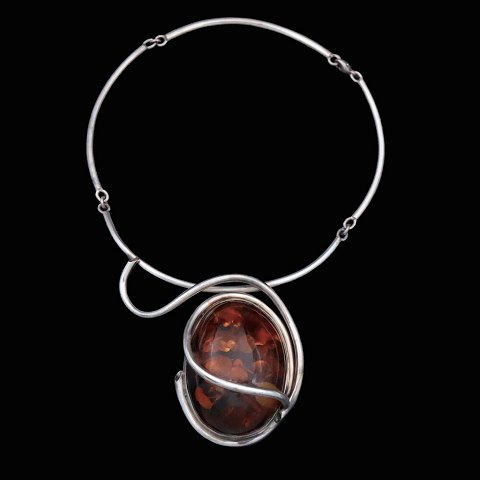 Halssmykke i sterlingsølv med stort ravvedhæng.