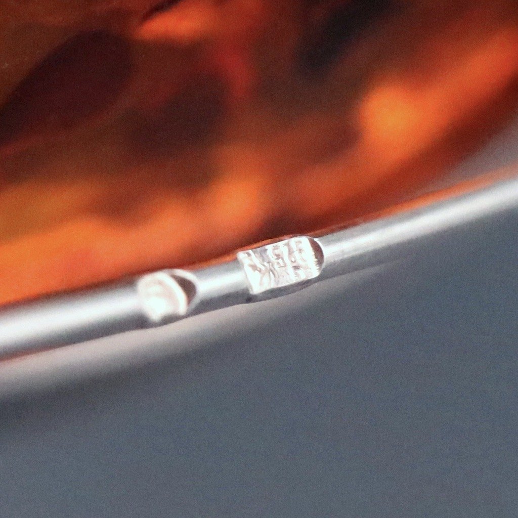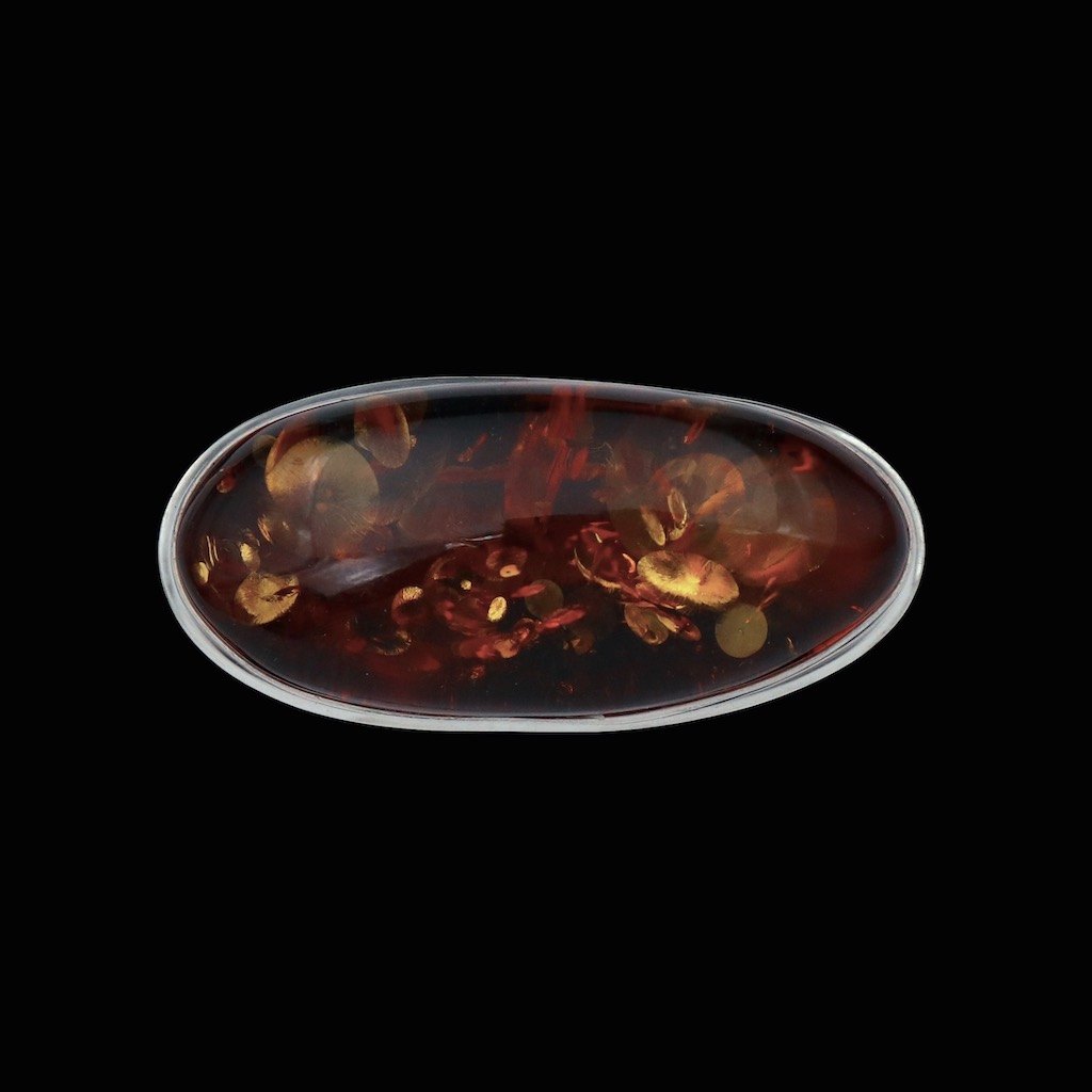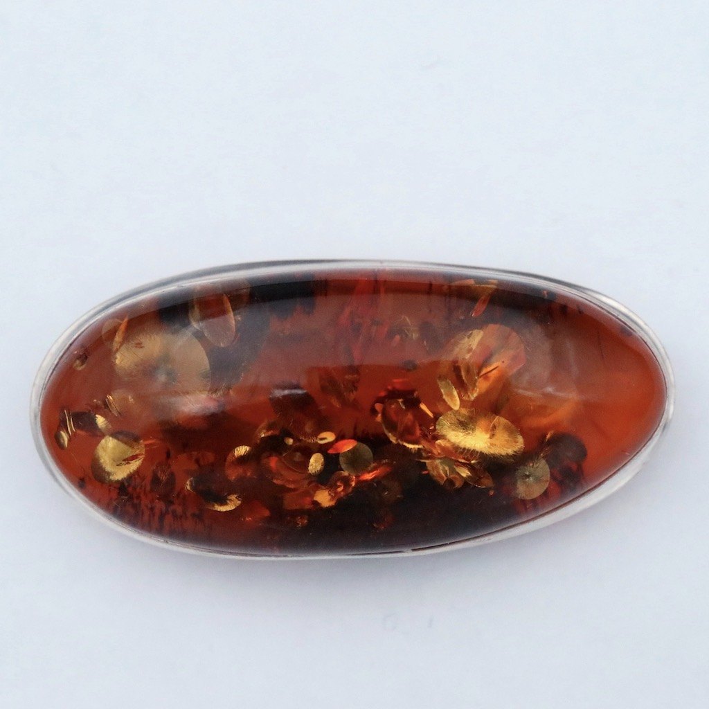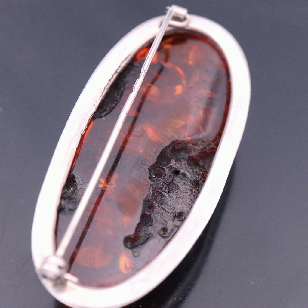 Broche i sterlingsølv med rav.