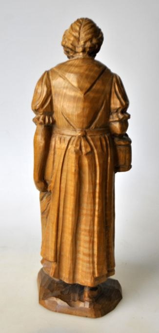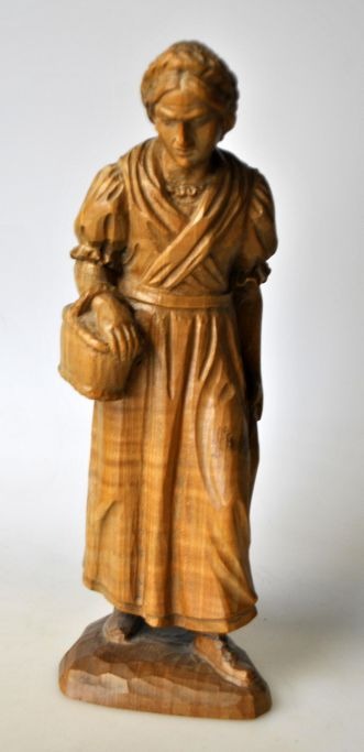 Ubekendt kunstner (20. årh. ): En gårende kvinde med kurv. Træ skæring. Usigneret.: H.: 24,5 cm.