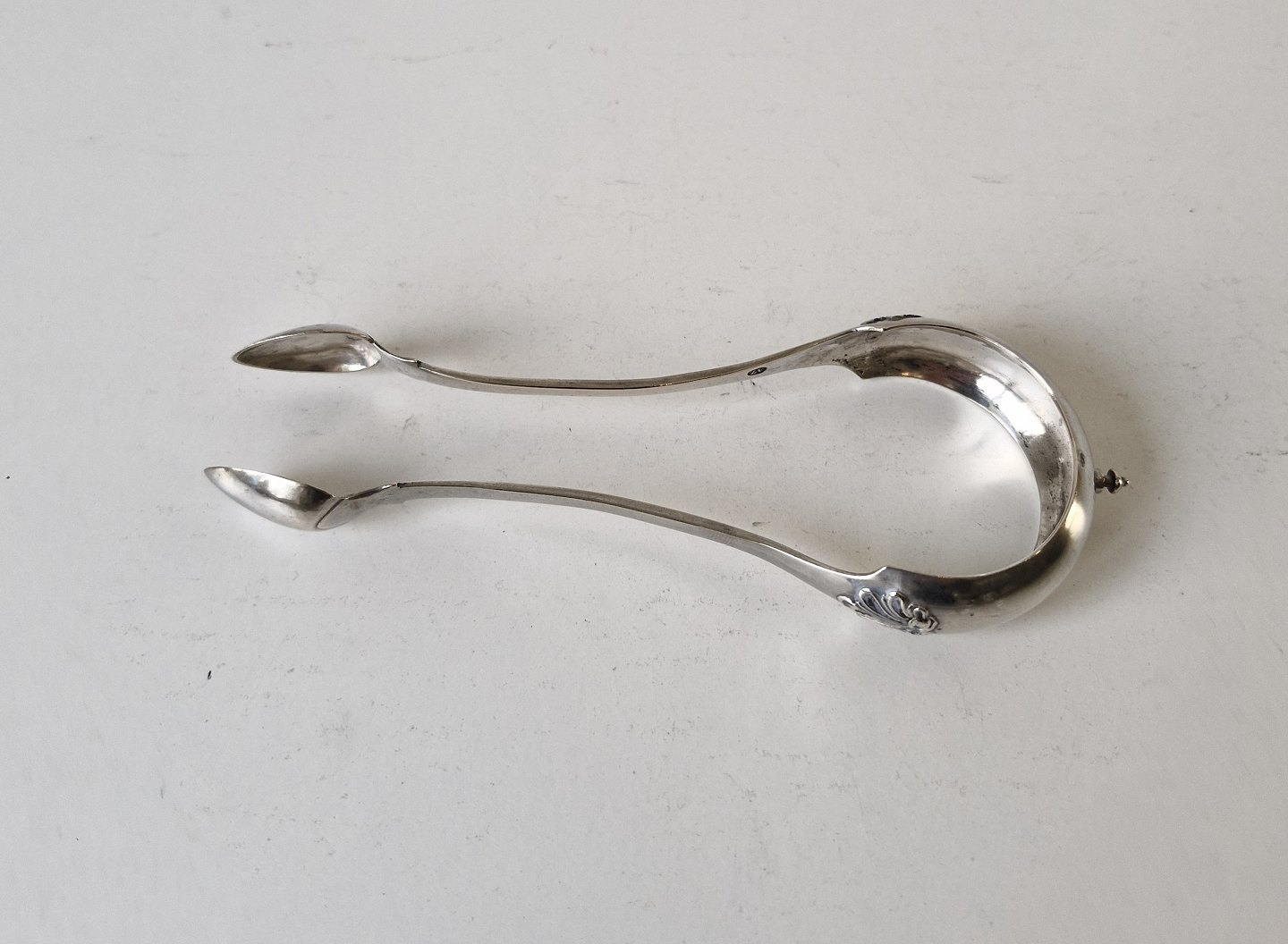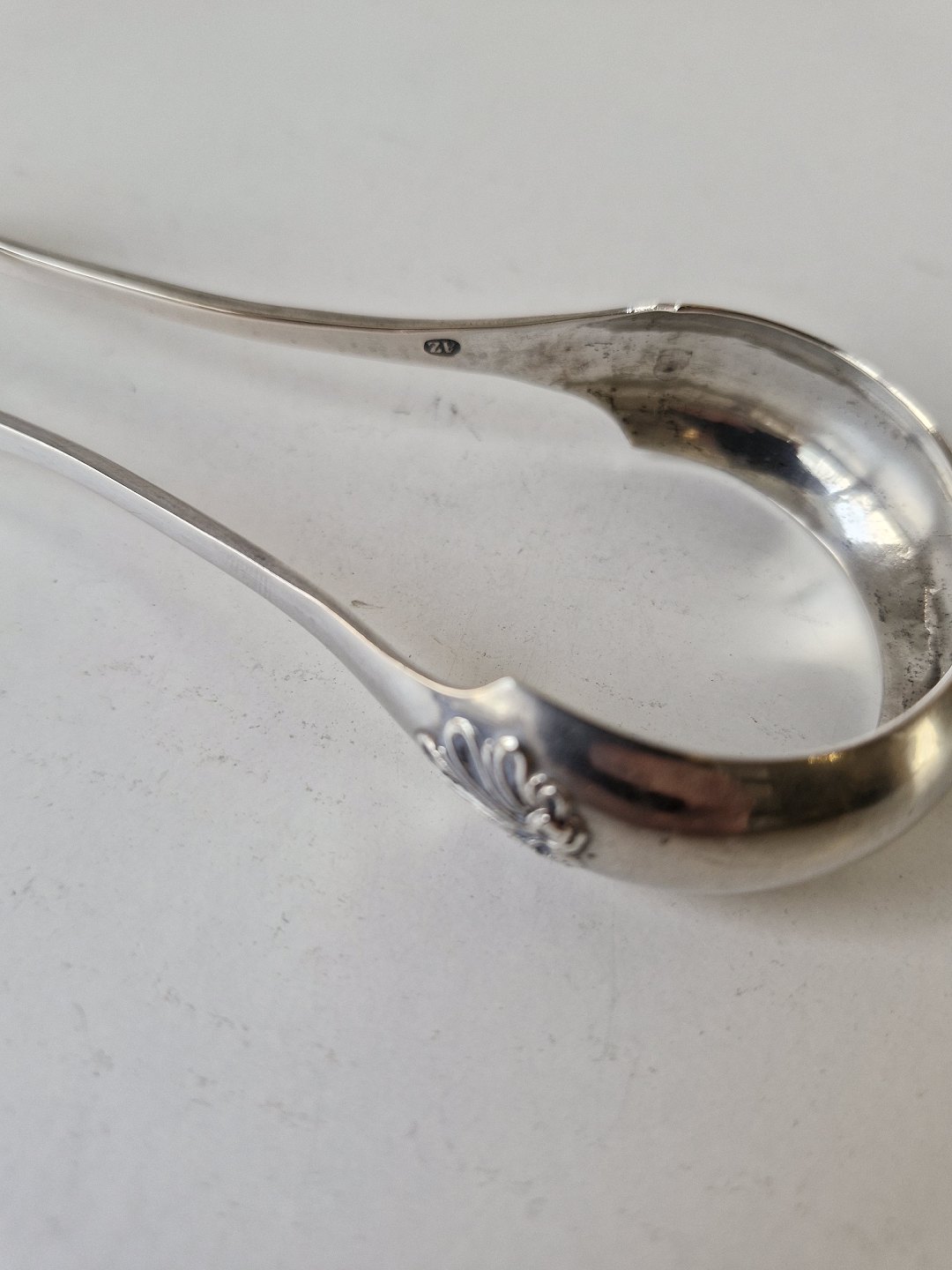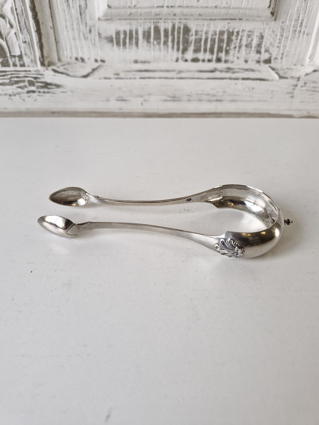 1800 tals sukkertang i sølv med musling