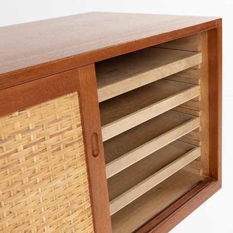 RY 26 - Skænk i teak med indretning og to skydelåger af patineret sjeneflet.