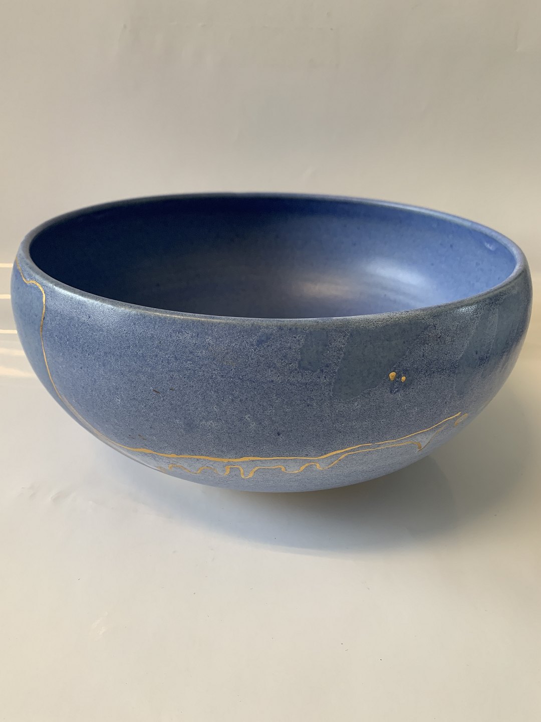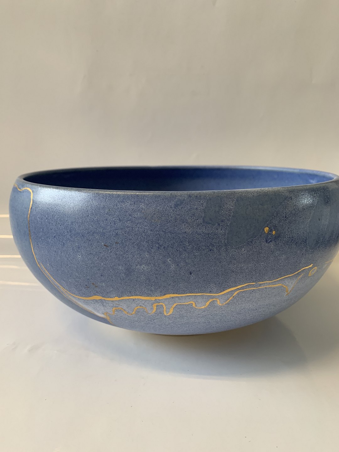 Two-tone lavender blue Bowl with gold details from Sylvest Keramik.