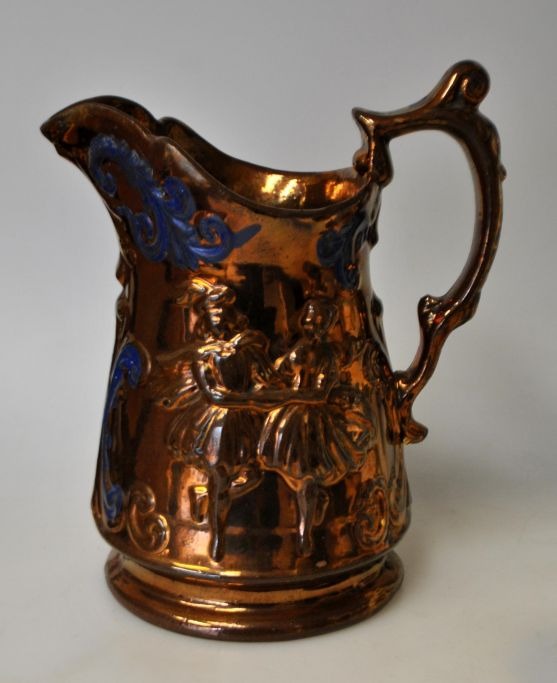 Engelsk lustra kande, 19. årh. Med reliefdekorationer af dansende. Endvidere blå emalje maling. H.: 18,5 cm.