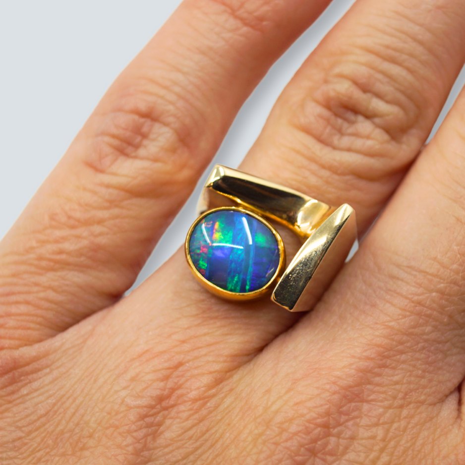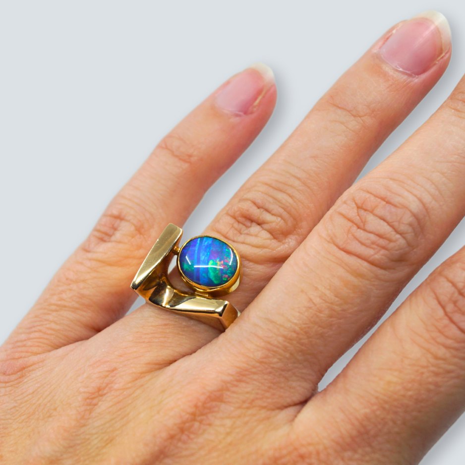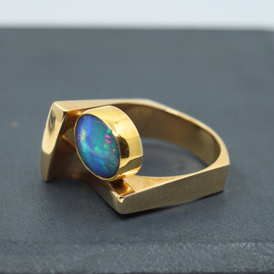 Frank Ahm; Ring i 14 kt. guld med opal. Moderne guldring str. 52.