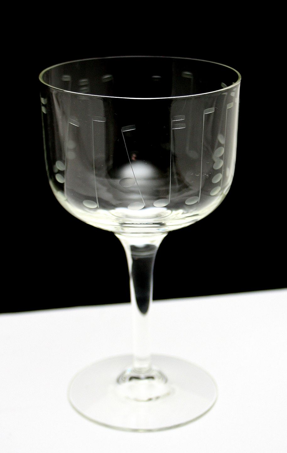 Holmegaard, Symfoni. Glat stilk, kumme med slebne noder. Designet af Per Lütken i 1960, udgået af produktion 1970.