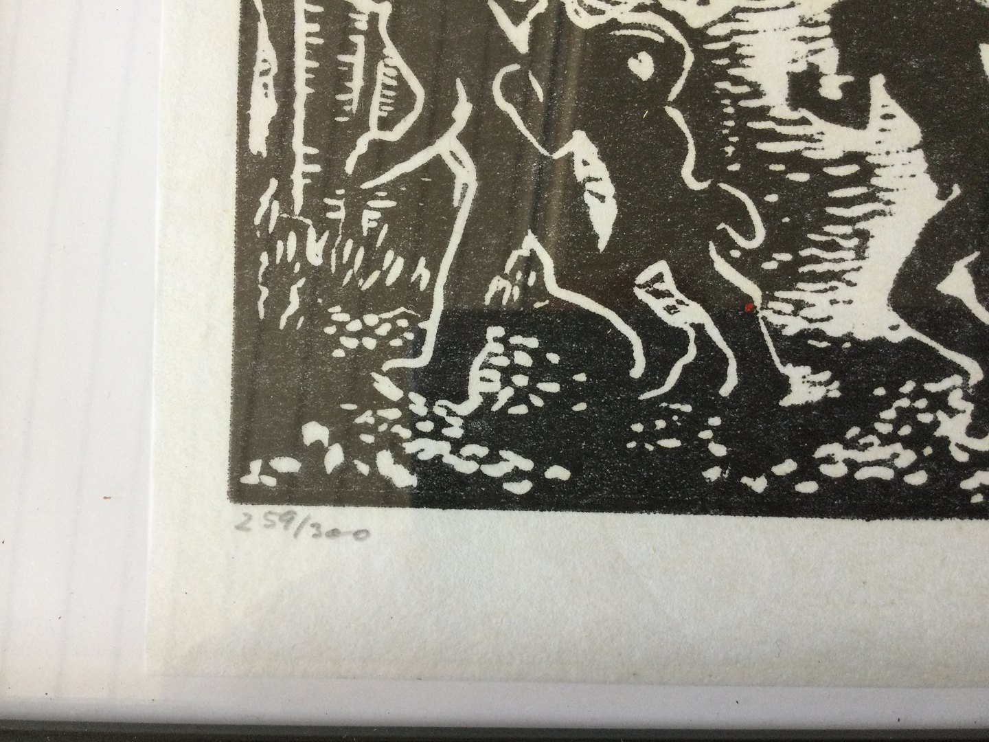 Træsnit af Lisbet Olrik - Løbende personer 1986.