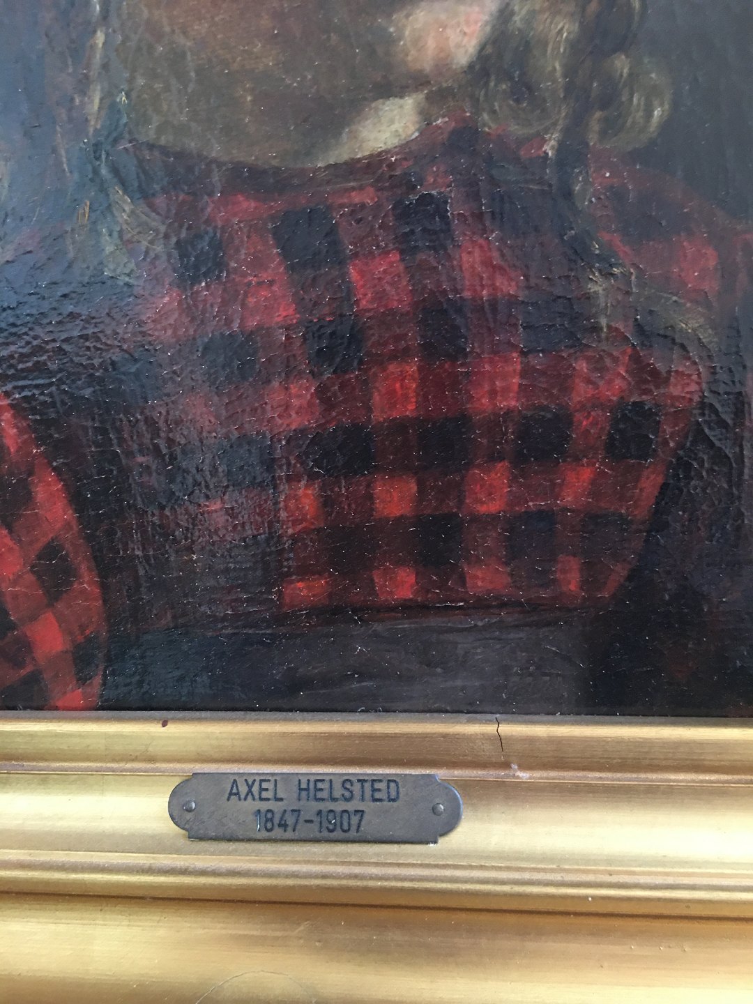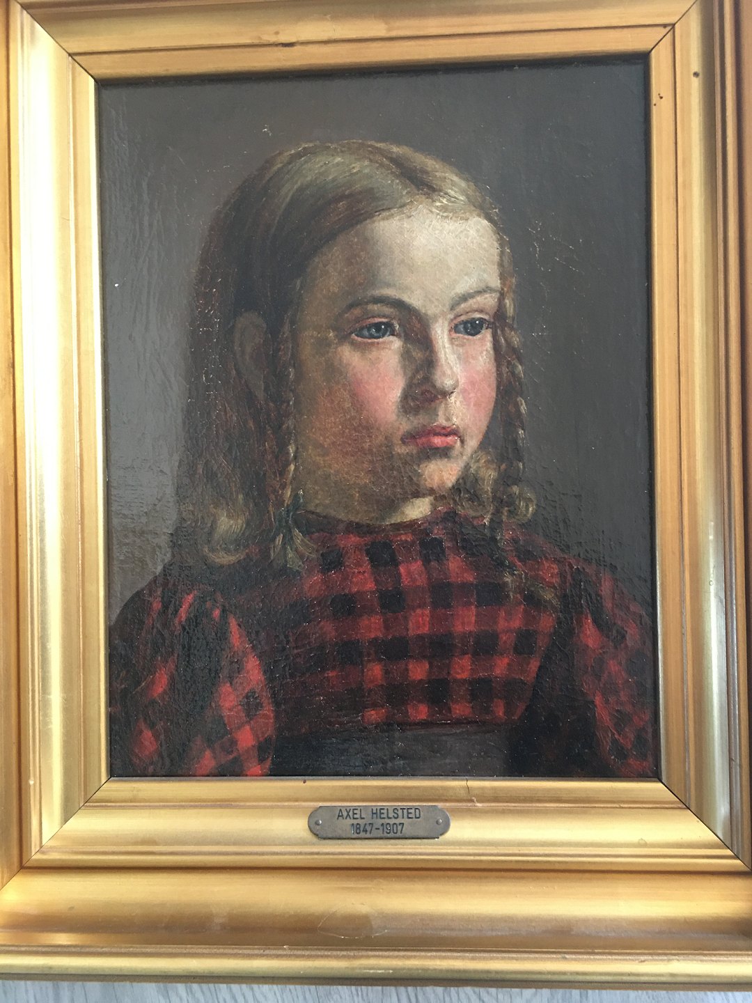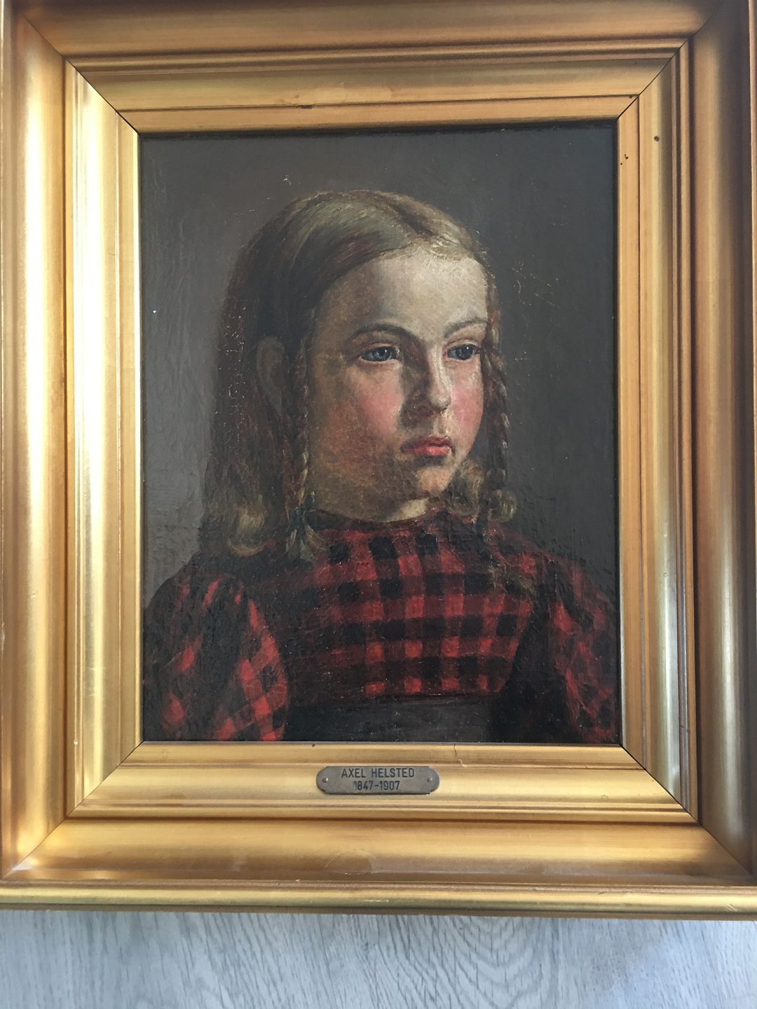 Maleri Axel Helsted - Portræt af pige med fletninger.