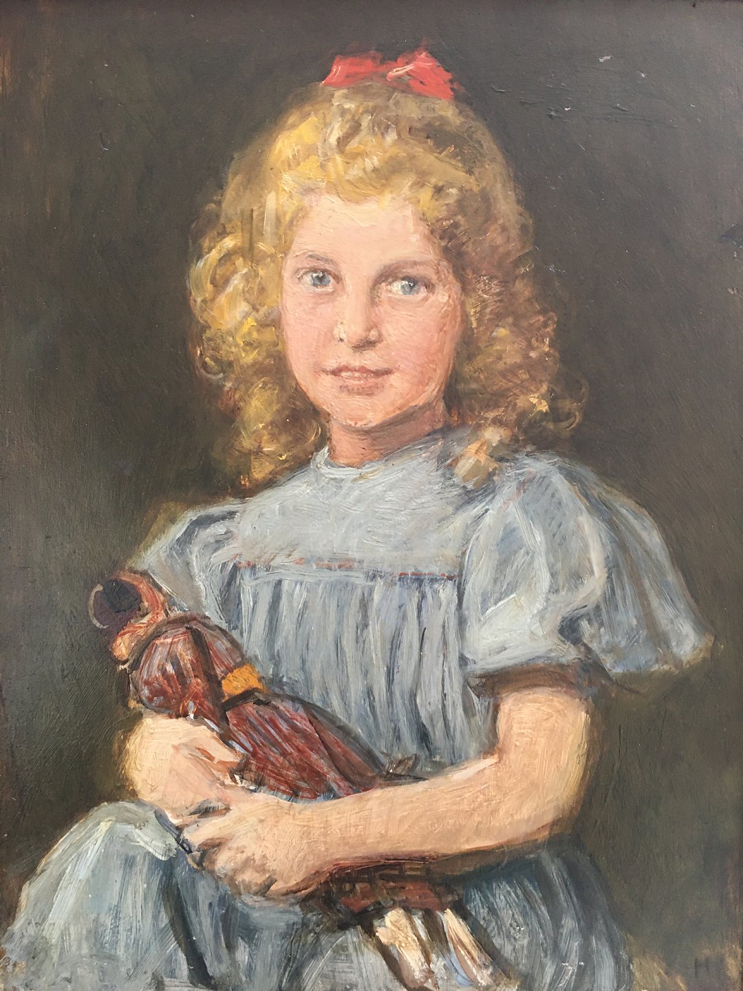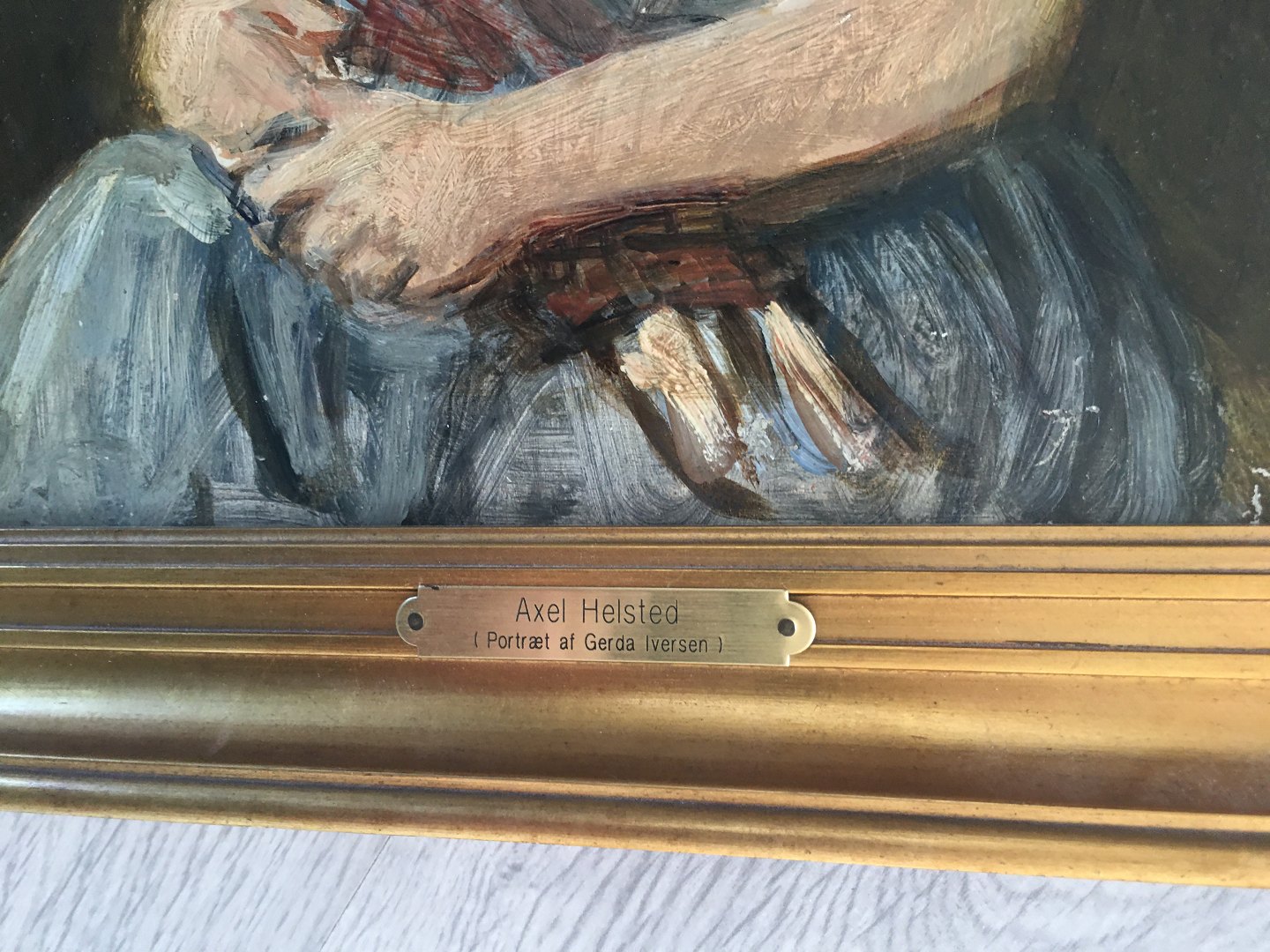 Text available in Danish: Maleri Axel Helsted - Portræt af Gerda Iversen 1887.