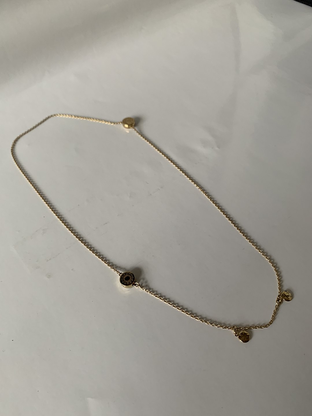 The necklace can be made to a variable length, using a locking mechanism on the chain itself. In this way, the chain can be adjusted according to use and need, as well as neck size. All in all, a beautiful and practical necklace.