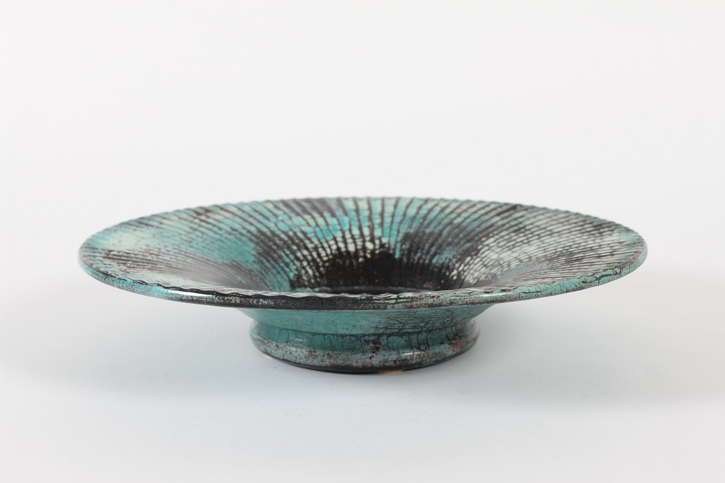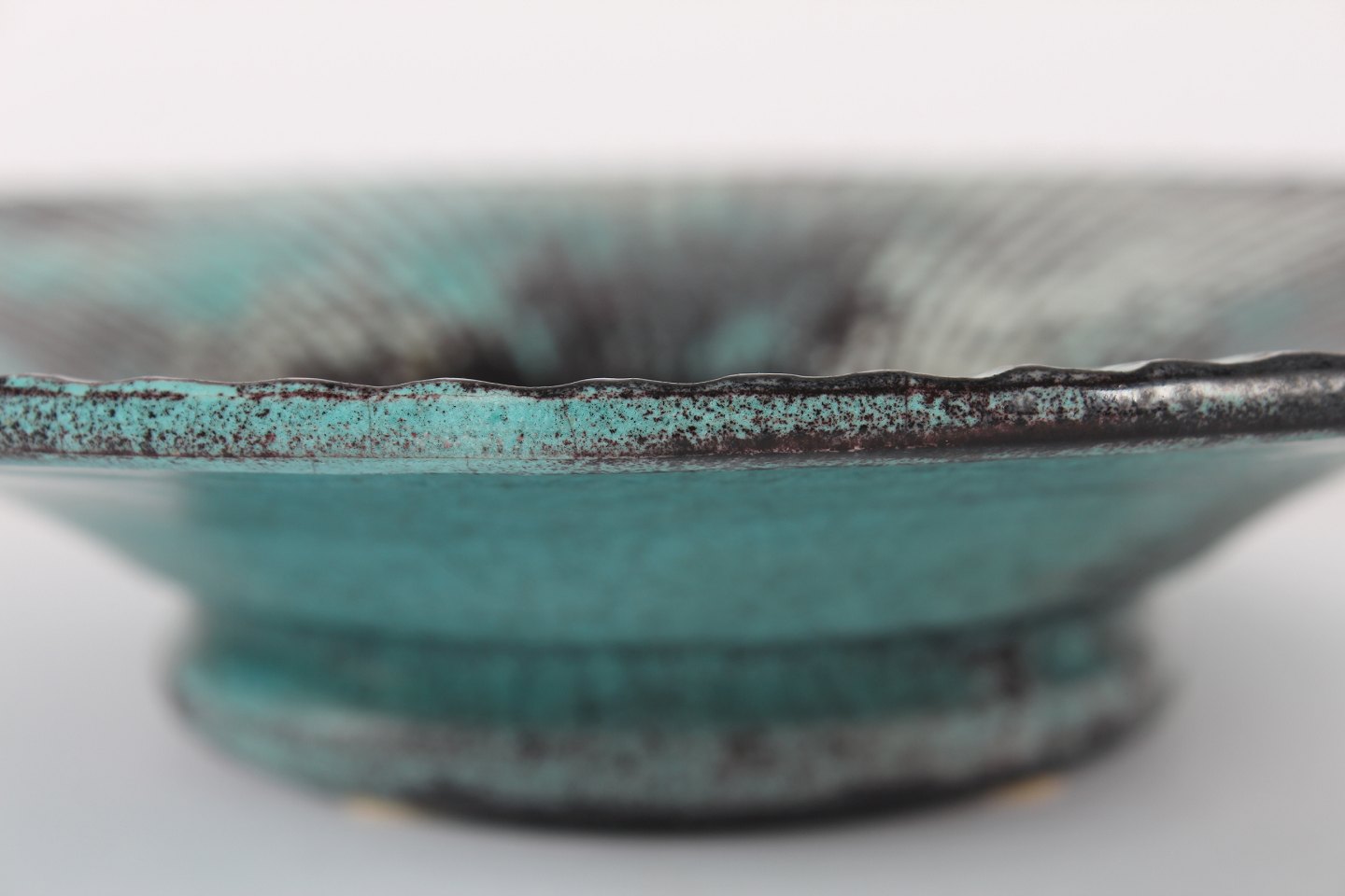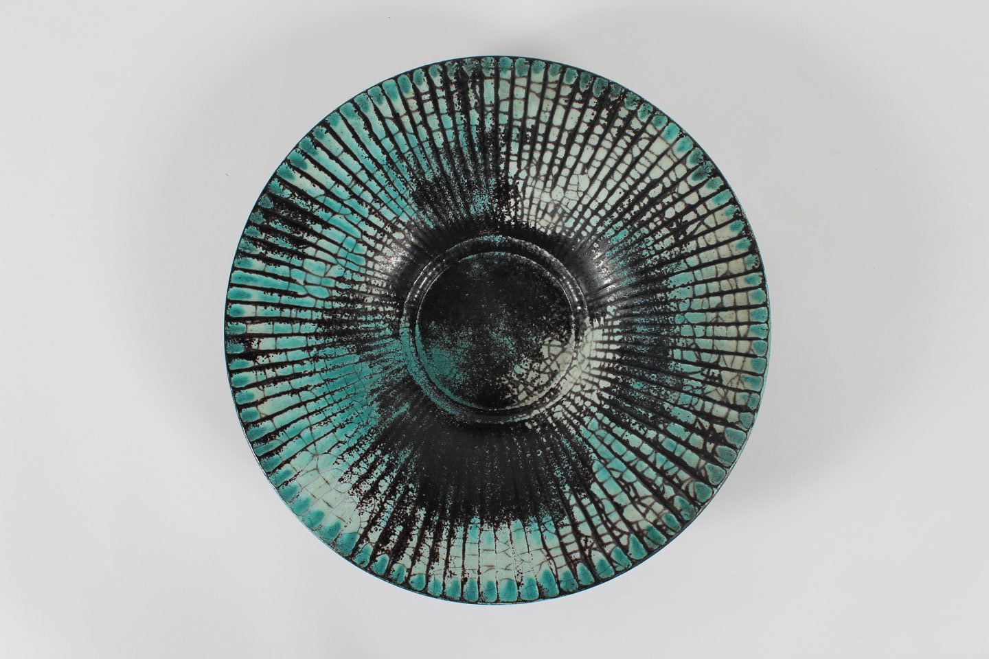 Art Deco HAK rundt rillet keramik fad af Nils Kähler