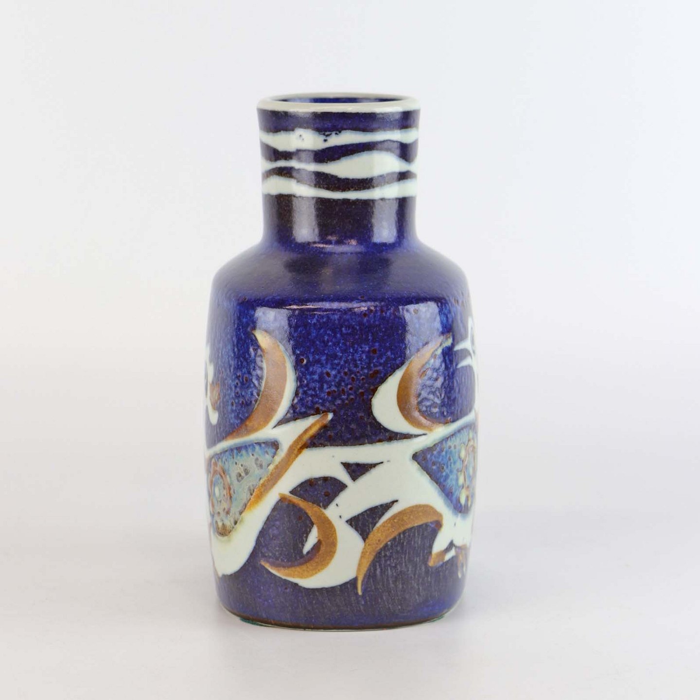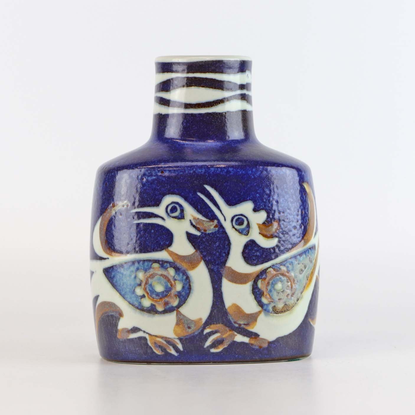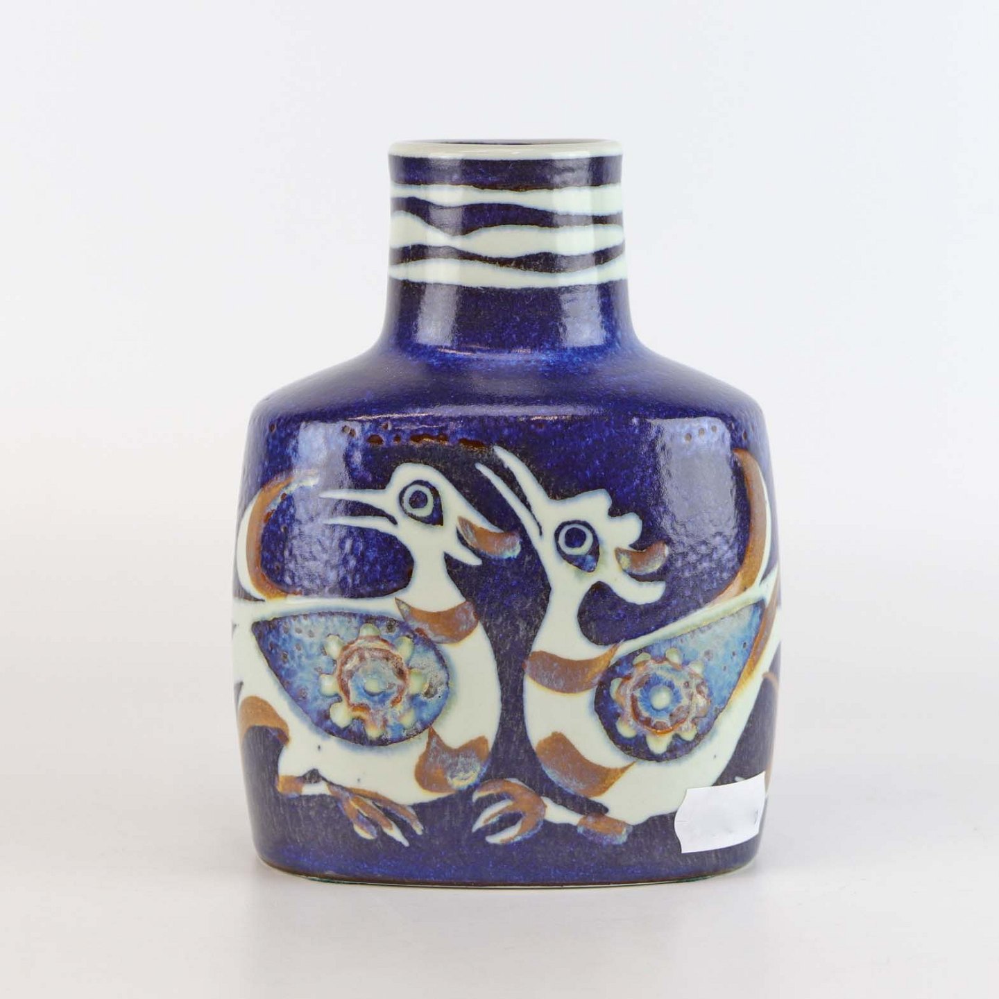 Baca vase i blå fajance med motiv af to fugle nr. 708/3207