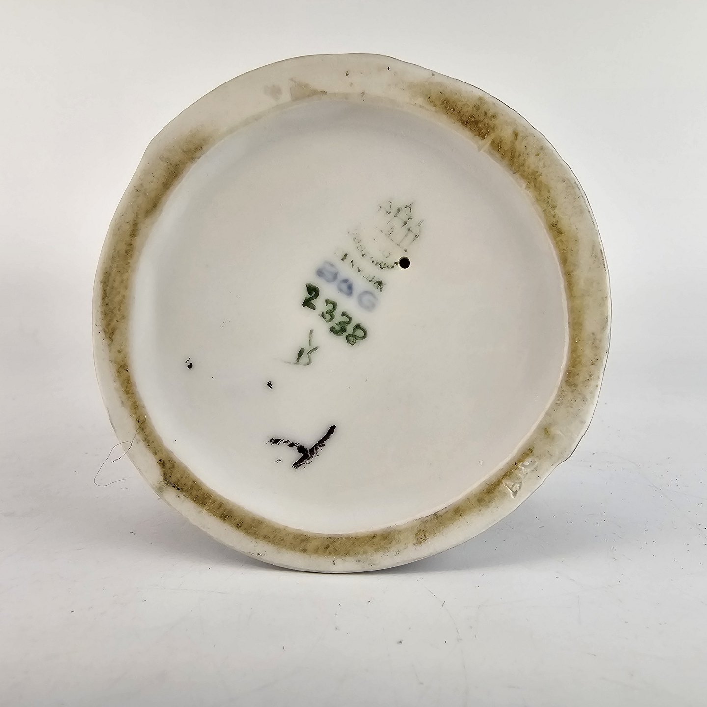 Kongelig håndmalet porcelænsfigur af en dreng med et fiskenet foran sig.