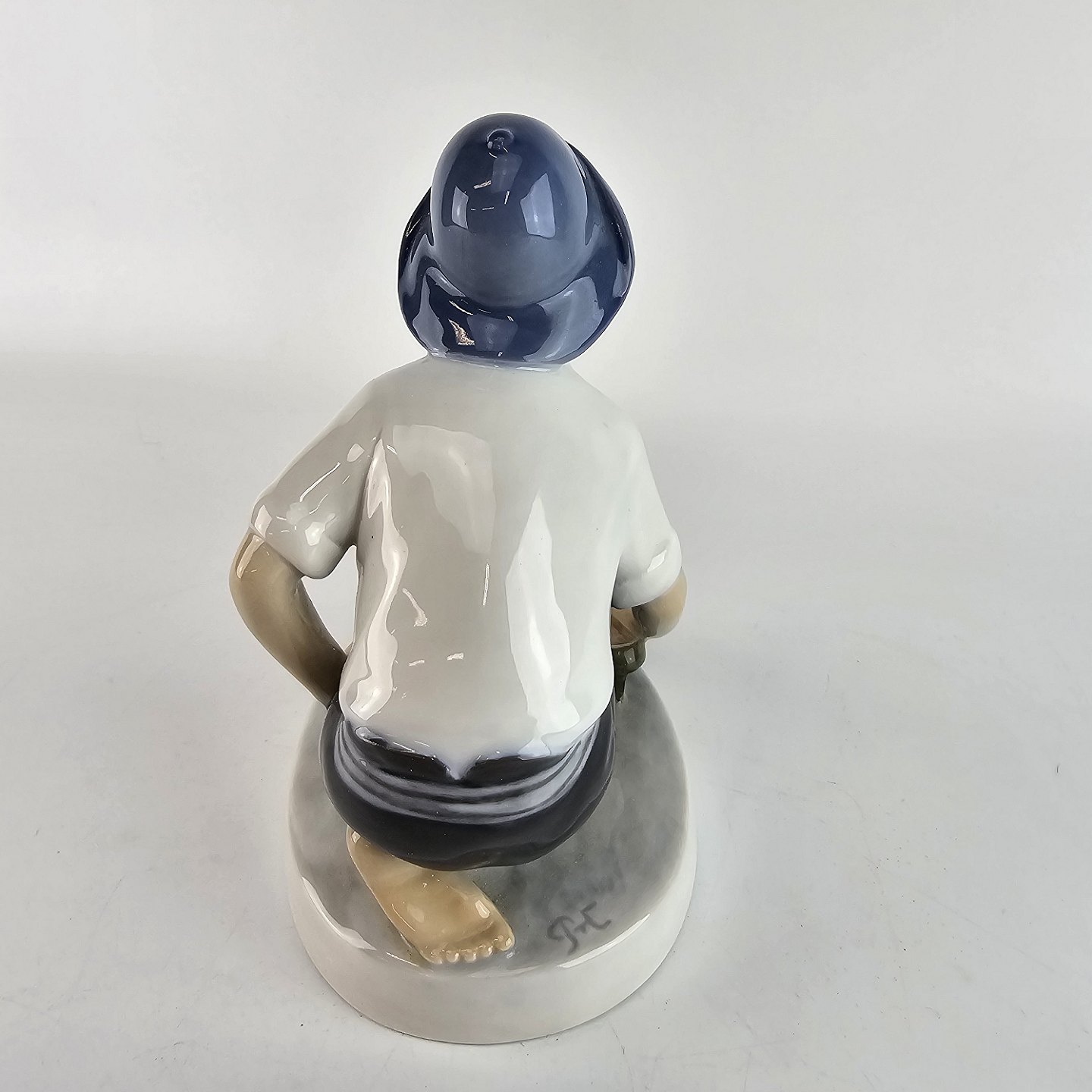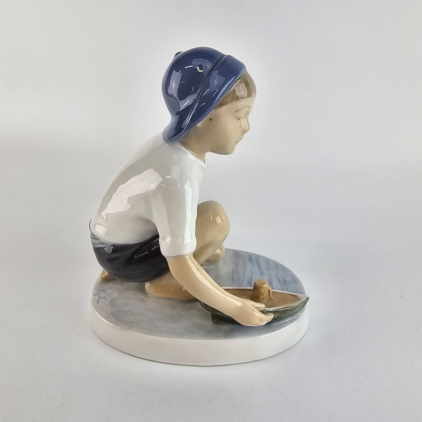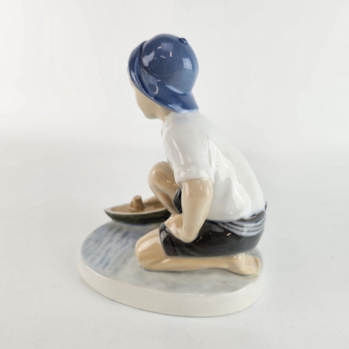 Kgl. håndmalet figur af porcelæn, forestiller en dreng som leger med et skib. Nr. 1878