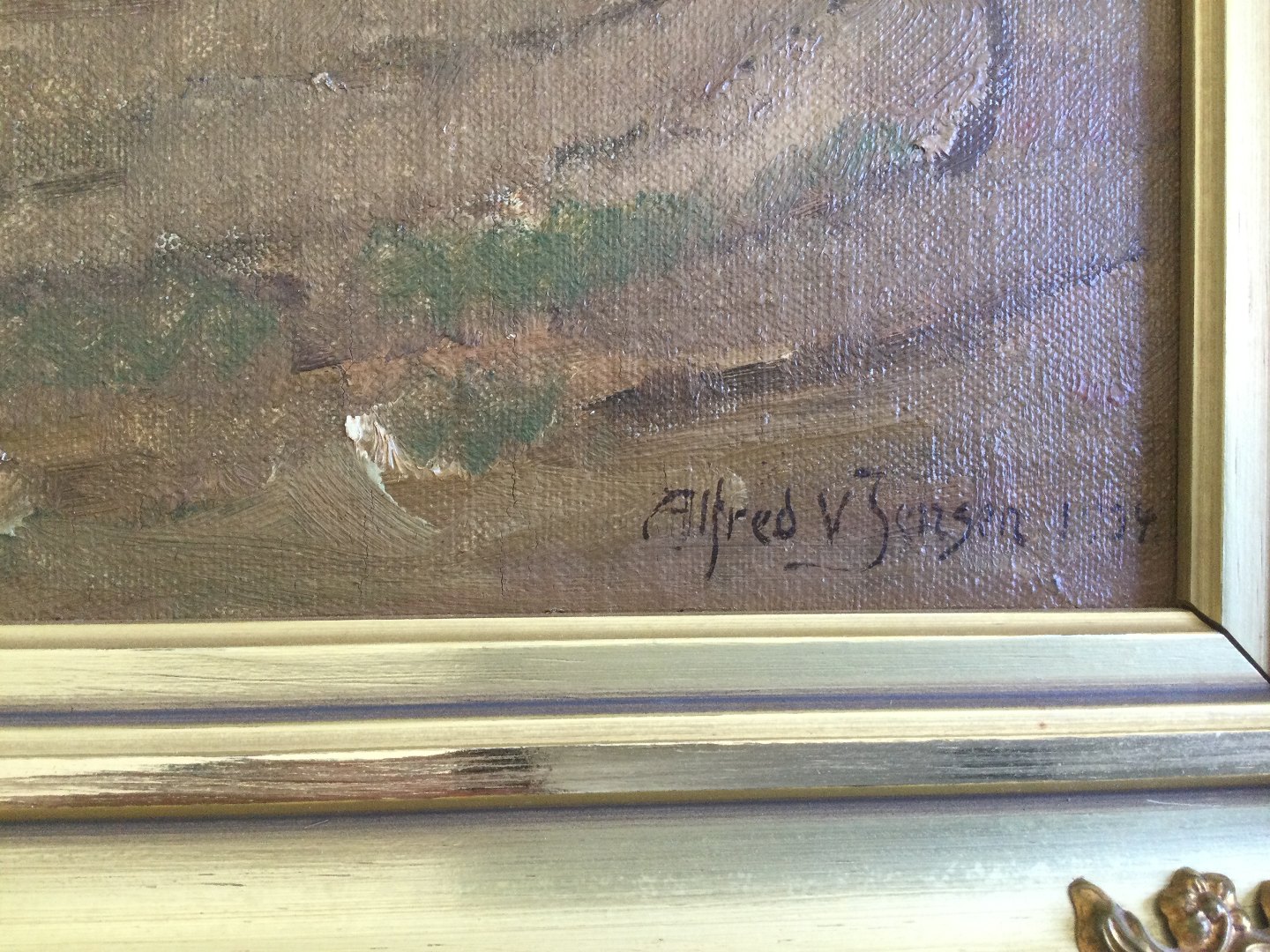Alfred V. Jensen var uddannet hos Frits E. Jørgensen i Roskilde og var mest kendt som portrætmaler og har bl.a. portrætteret Deres Majestæter Kong Christian X, Dronning Alexandrine og Dronning Ingrid.
