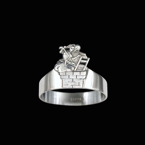 Servietring i sølv med motiv fra H.C. Andersens eventyr.