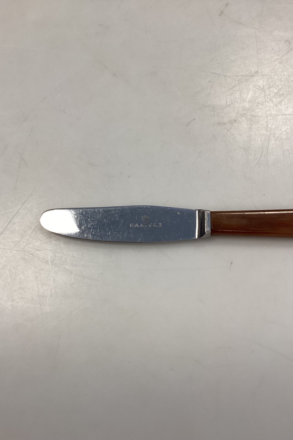 Rådvad Rustfri Frugtkniv med lysebrunt bakelithåndtag/kunsthorn. Måler 15,5 cm / 6,10 in.