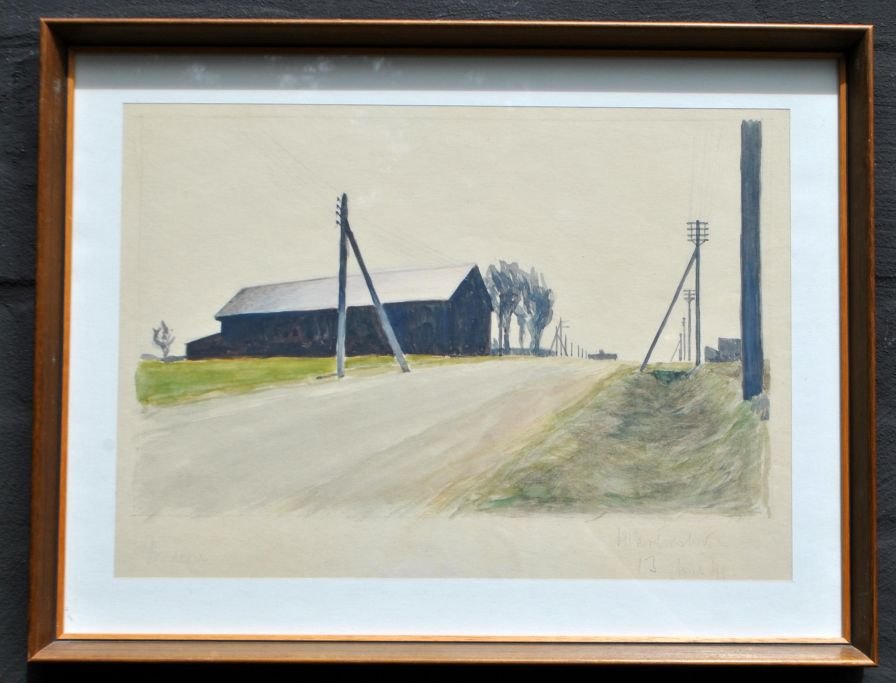 Holmskov, Helge (1912 - 1982) Danmark: En lade. Hvidovre. Akvarel. Signeret 13. April 1941. 22 x 35 cm.