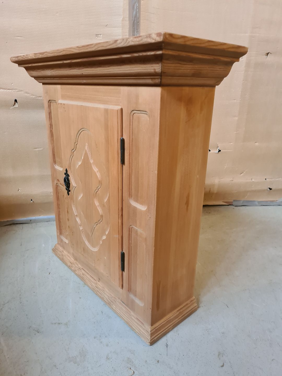 Vægskab i massivt fyrretræ, fra 1990erne.