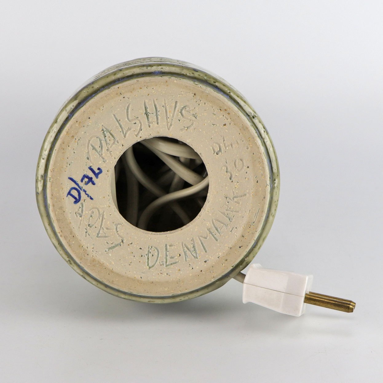 Bordlampe i stentøj med rifler samt grøn og blå glasur. Nr. 30