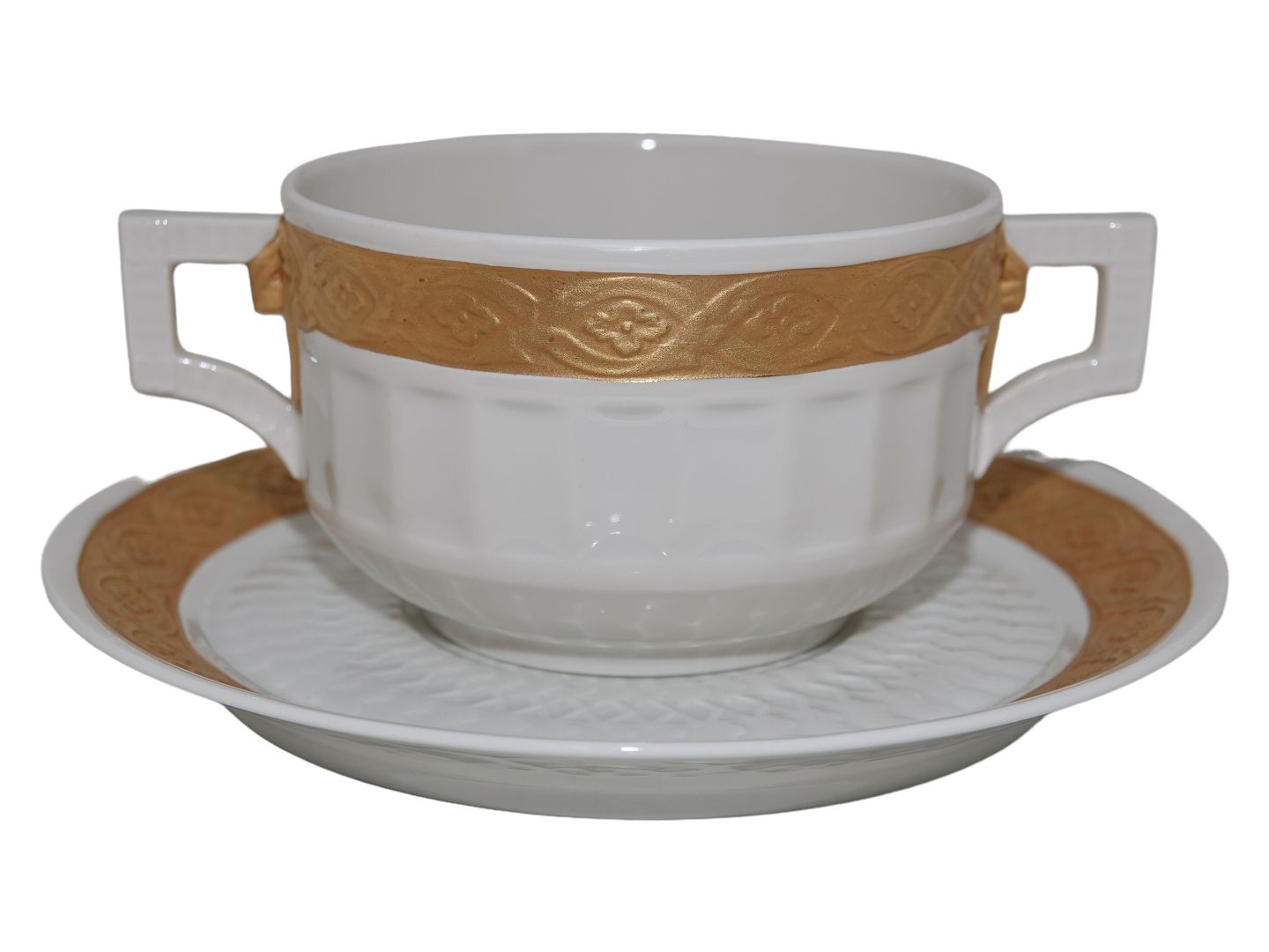 Royal Copenhagen Guld Vifte, stor bouillionkop med tilhørende underkop.