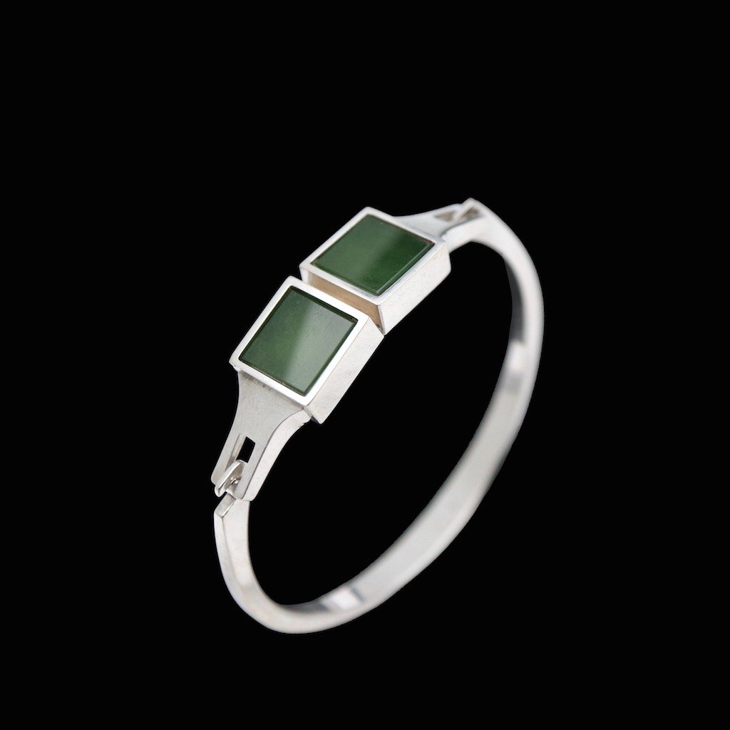 N.E. From - Denmark. Sterling Silver Bangle with Nephrite #12.