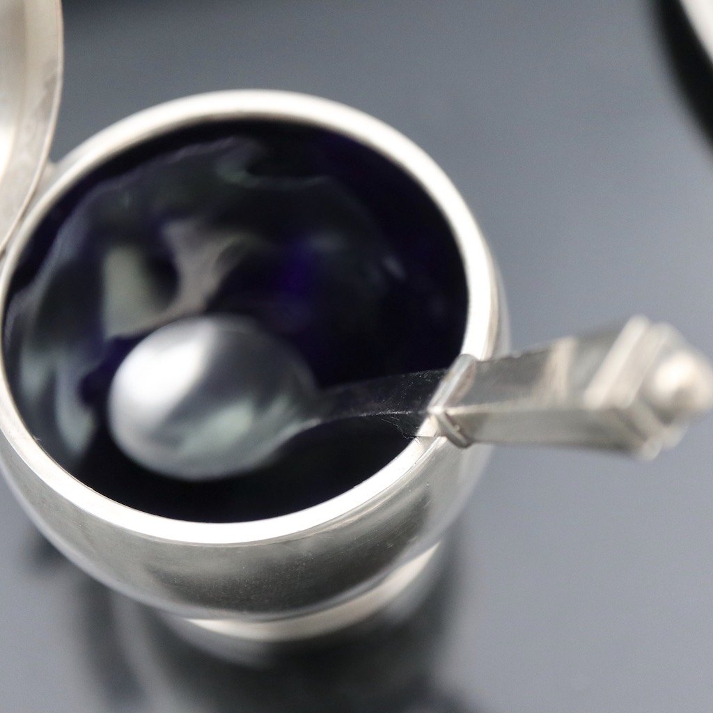 Sennepskrukke #632 med blå emalje H. 6,4 cm.