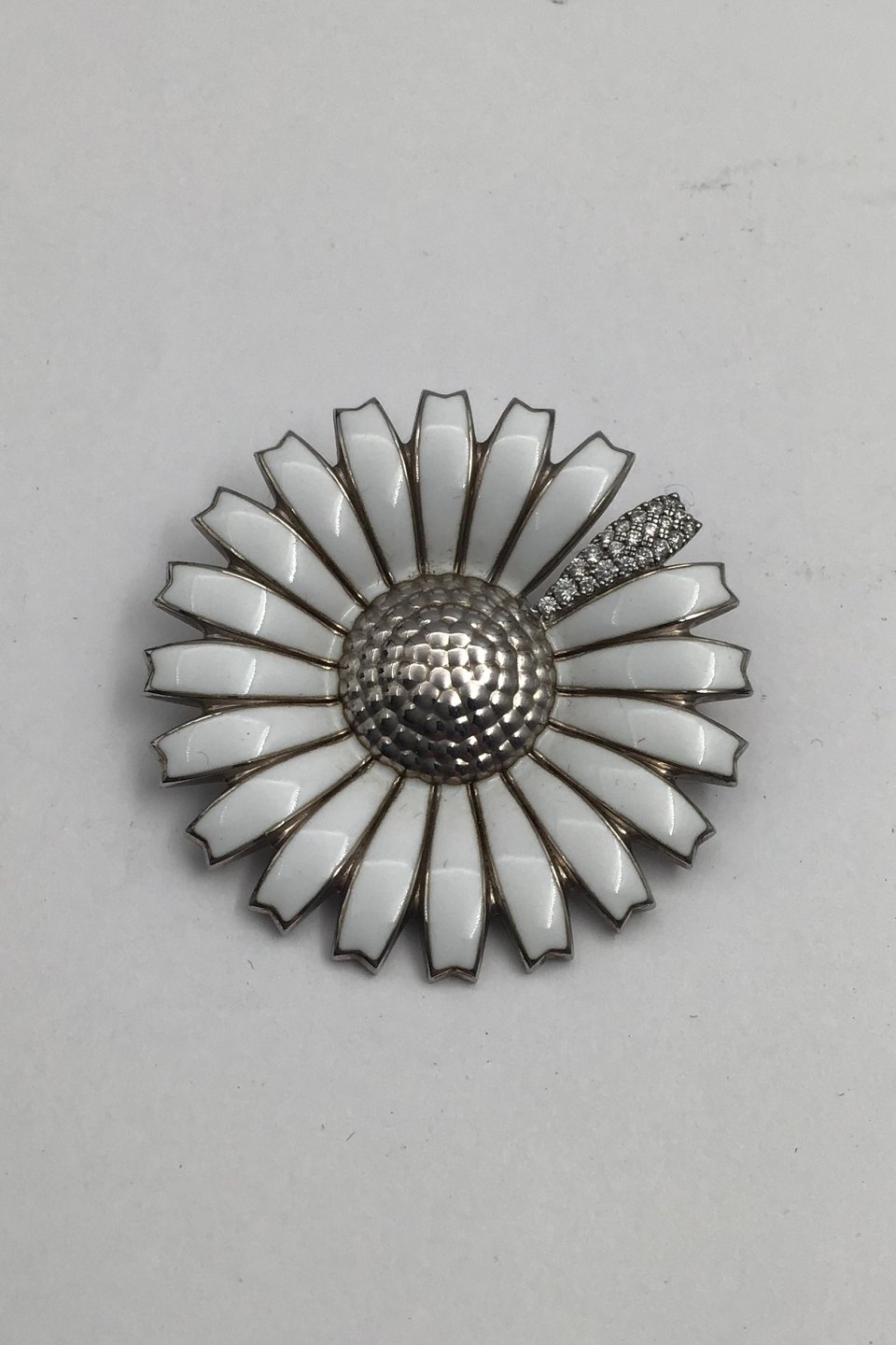 Georg Jensen Sterling Silver Marguerit Brooch / Pendant Pavé Diamonds 0.21ct