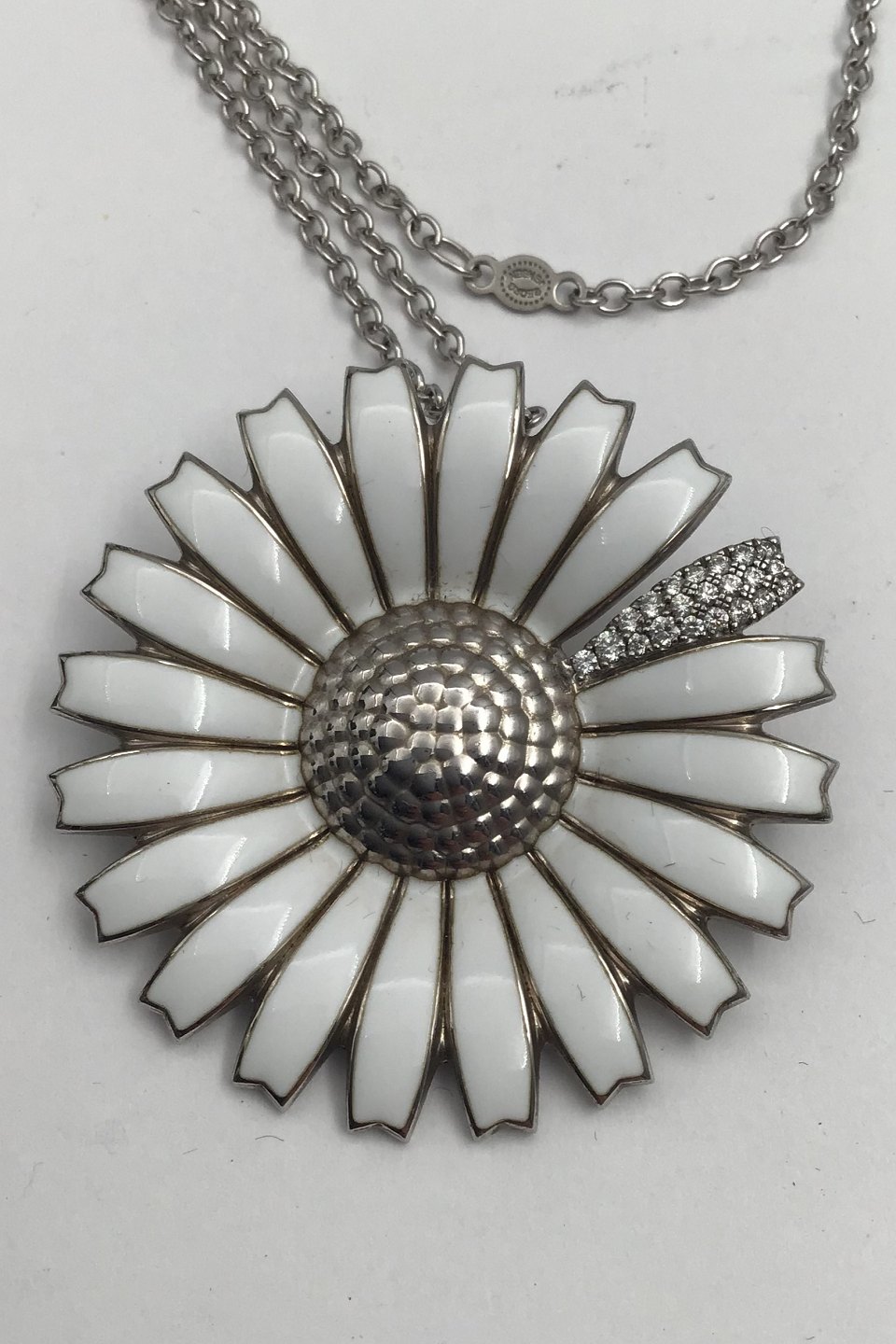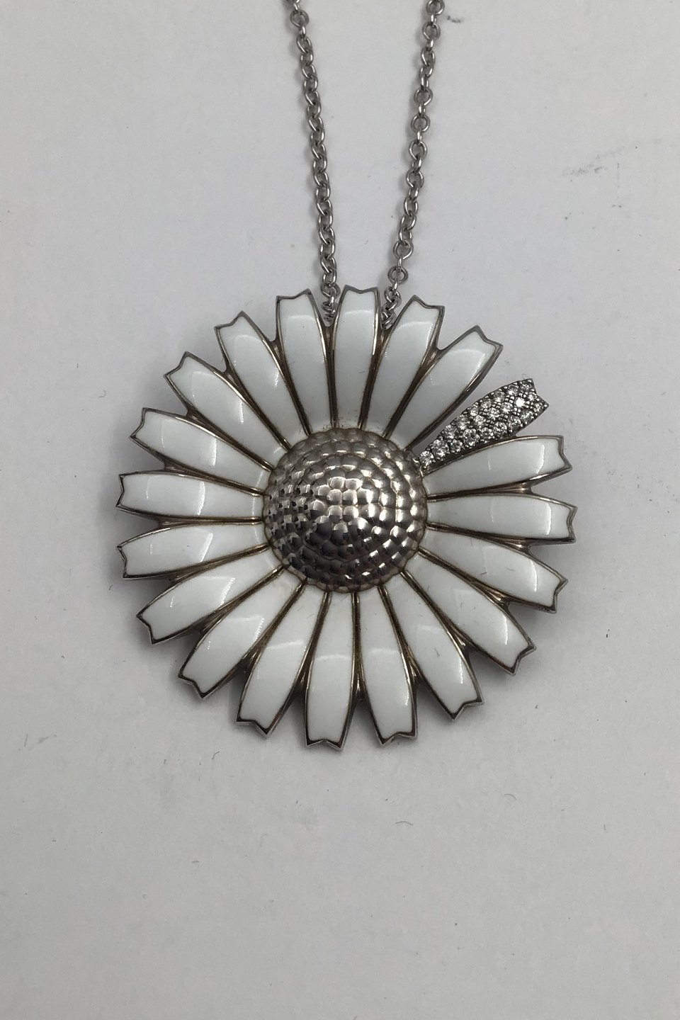 Georg Jensen Sterling Silver Marguerit Brooch / Pendant Pavé Diamonds 0.21ct Measures Diam 4.3 cm (1.69 inch) Chain 60 cm (23.6 inch) Combined Weight 24.2 gr (0.85 oz)
