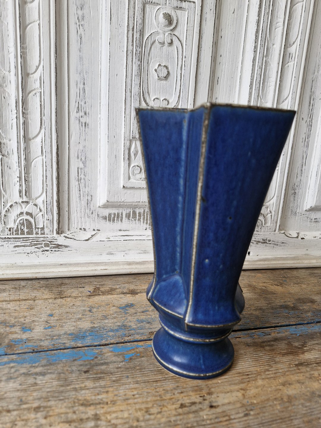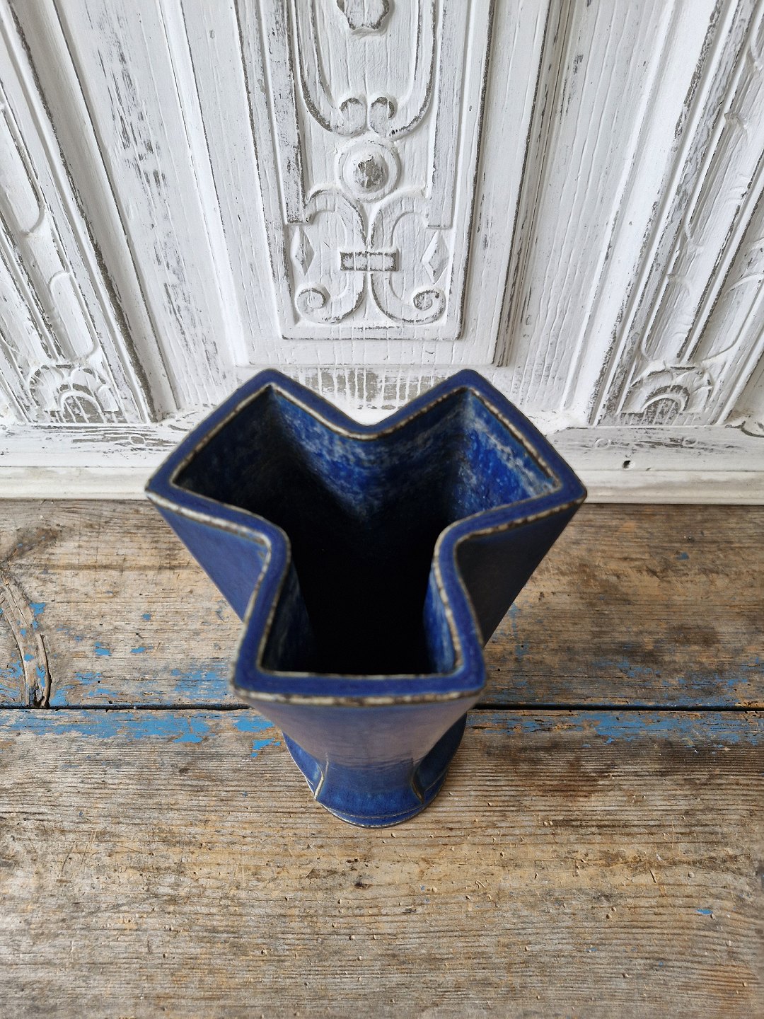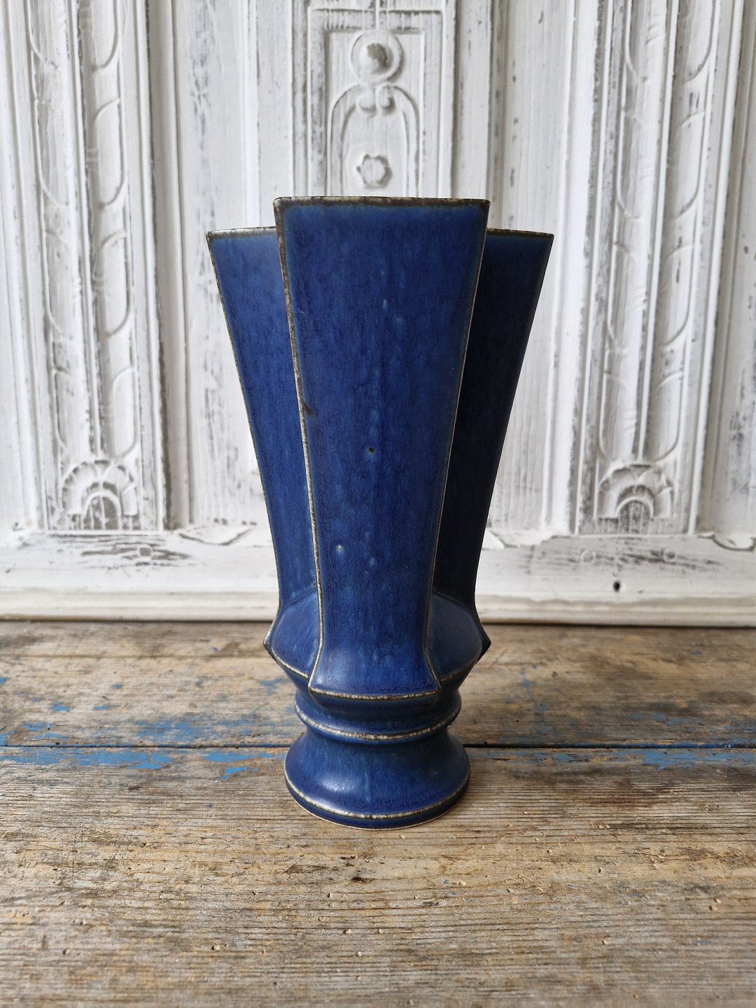 B&G angular stone vare vase in blue glaze by Lisa Engqvist