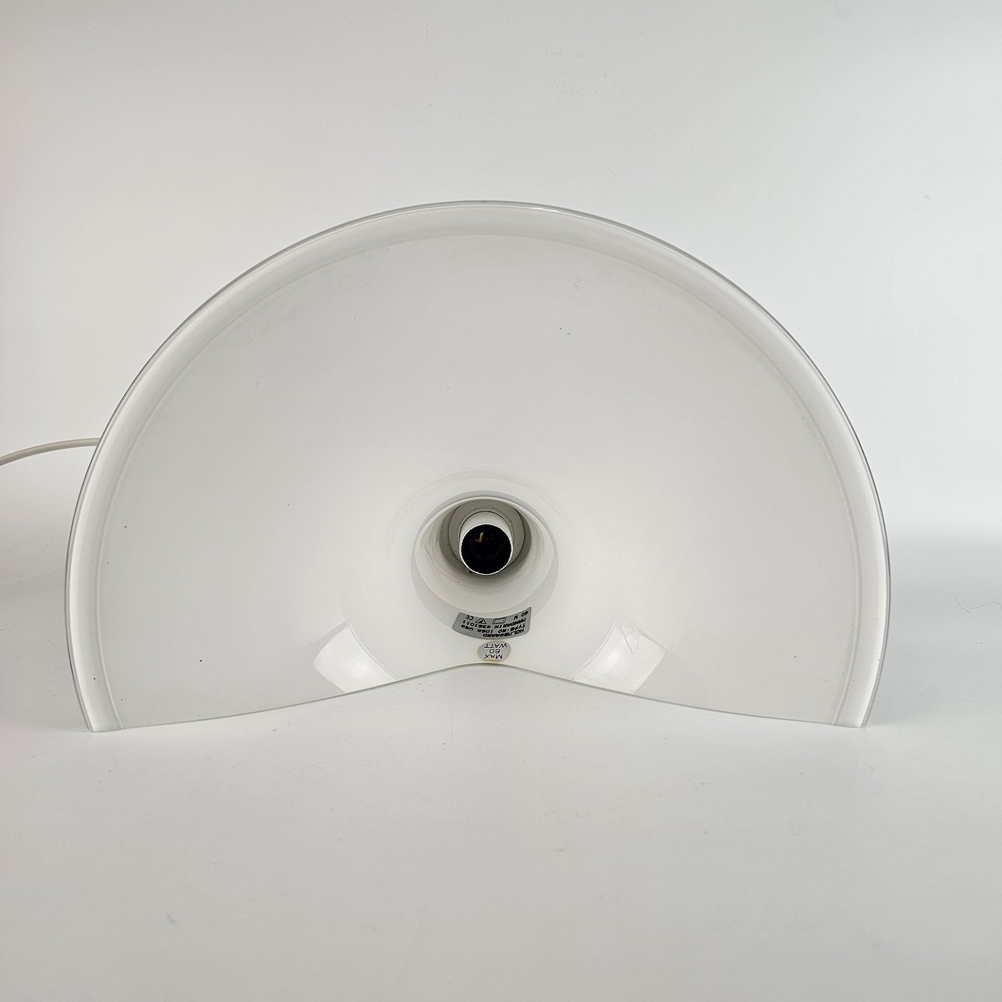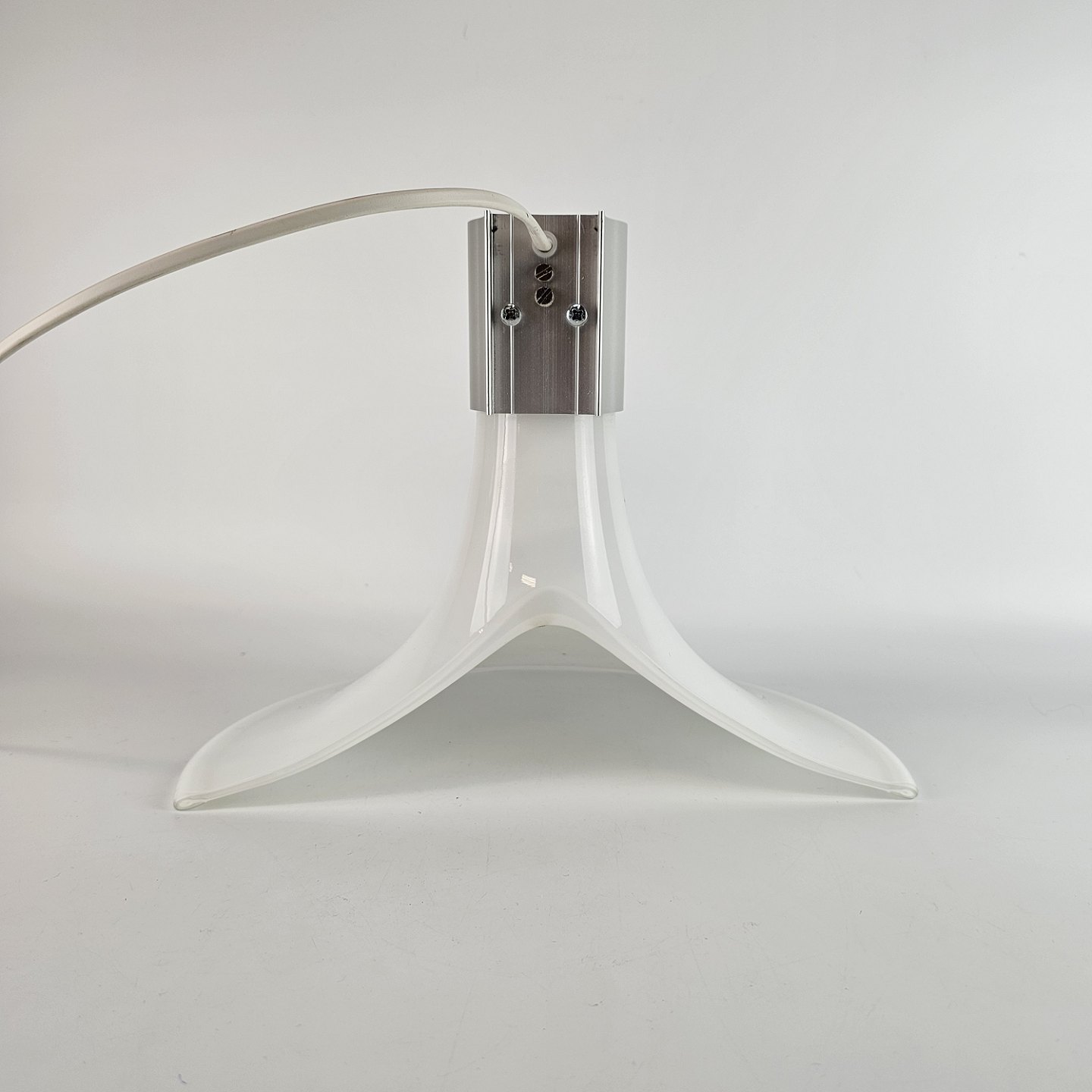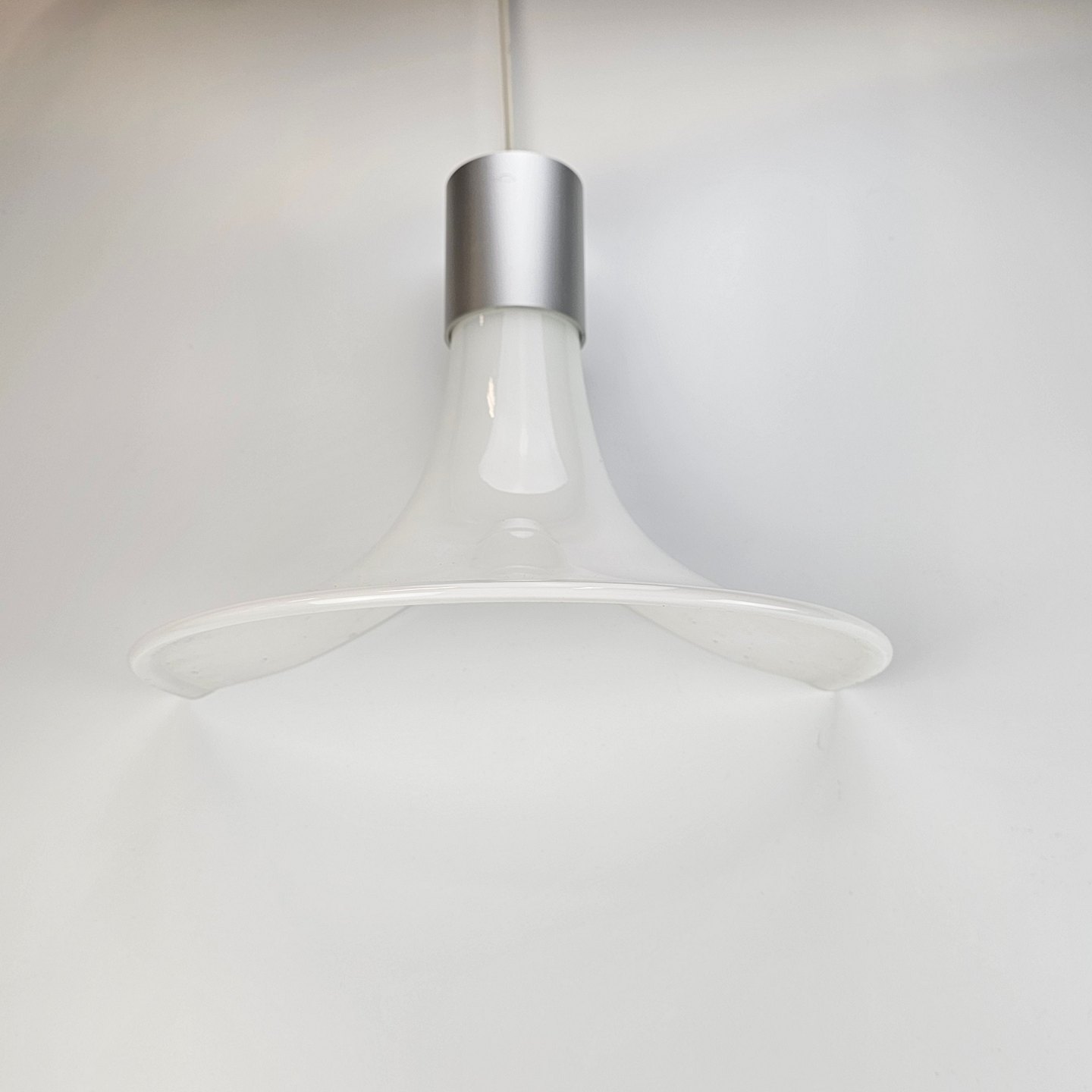 Mundblæst hvid glaslampe med stålhætte, til væg
