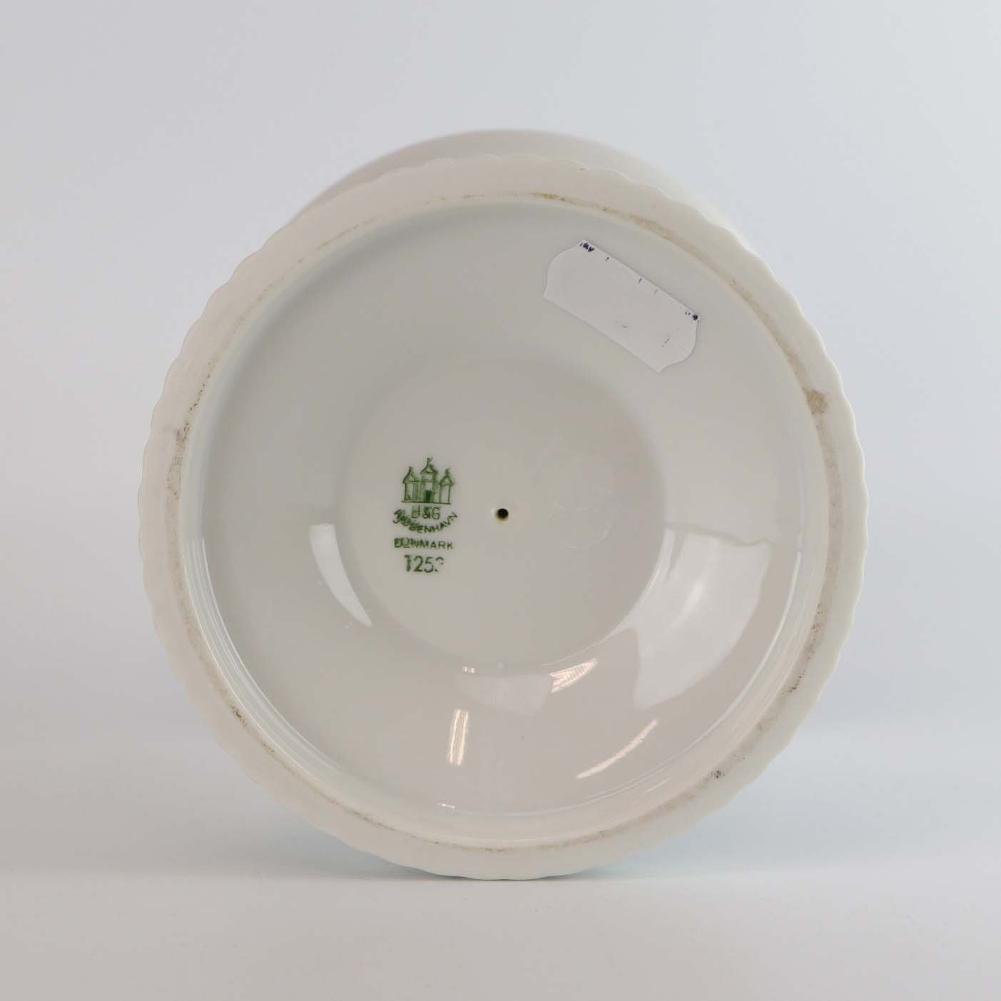 Lysestage i porcelæn med lyseblå og hvide nuancer samt riflet stamme.