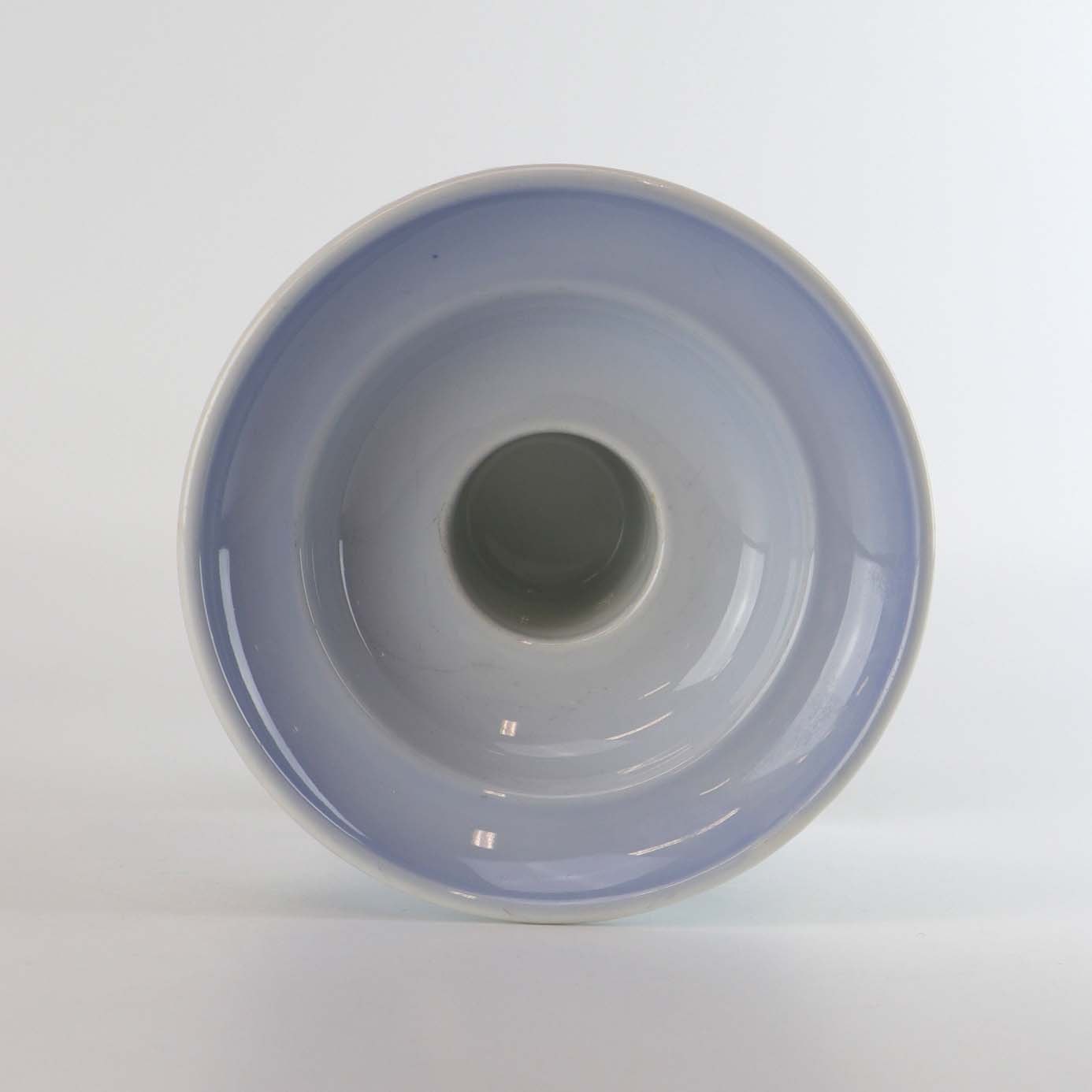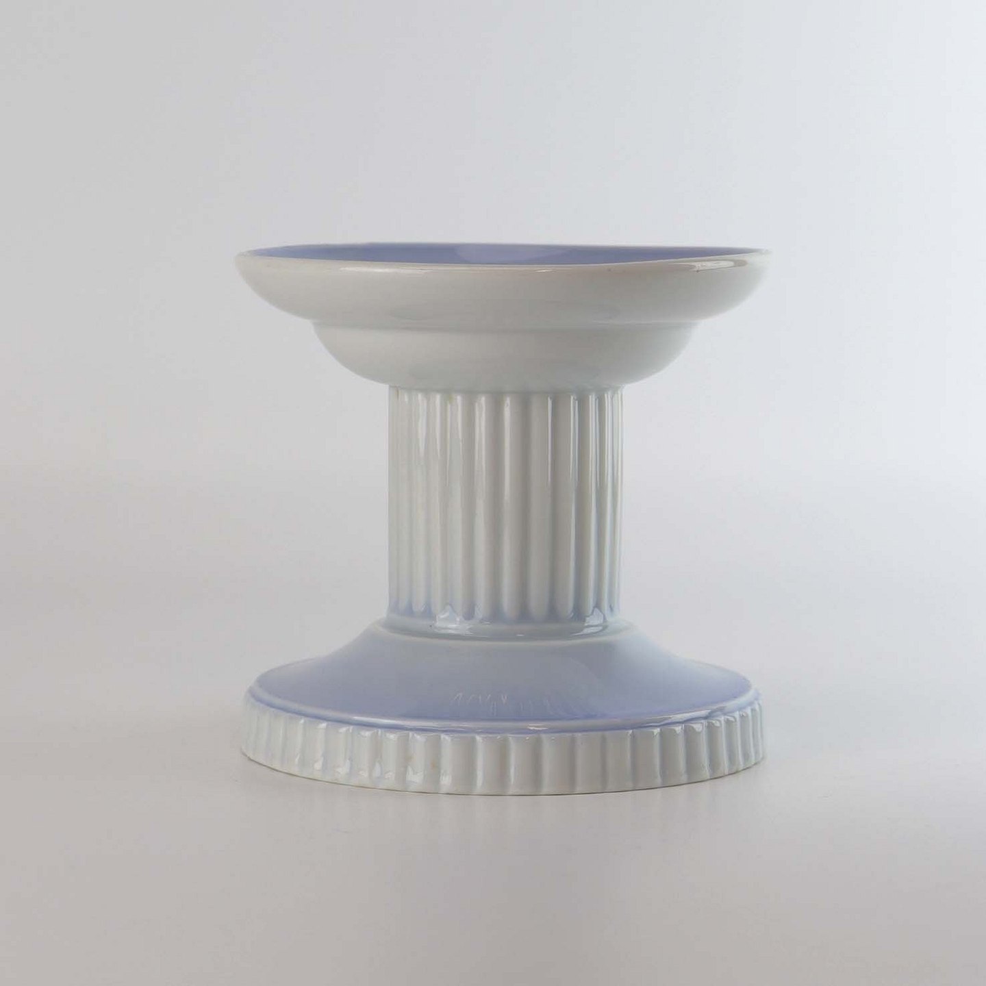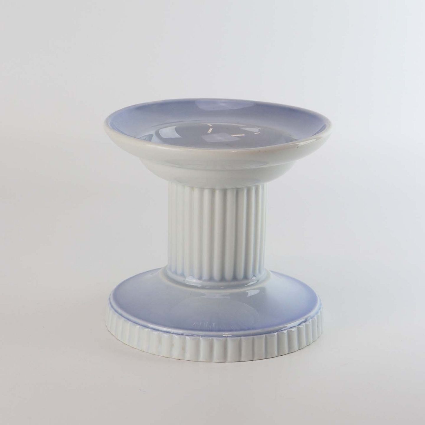 Lysestage i porcelæn med lyseblå og hvide nuancer samt riflet stamme.