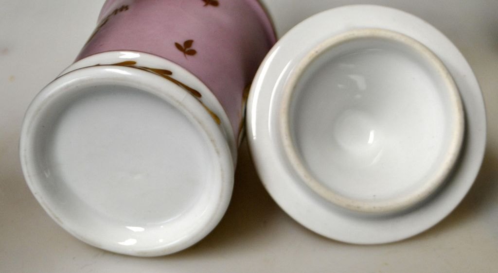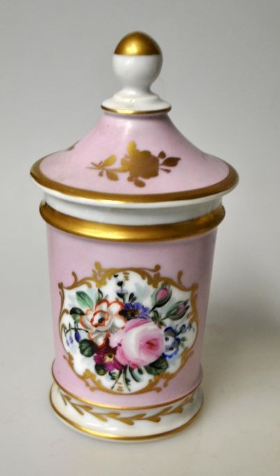 German hand-painted porcelain lidded jar, 19th century.