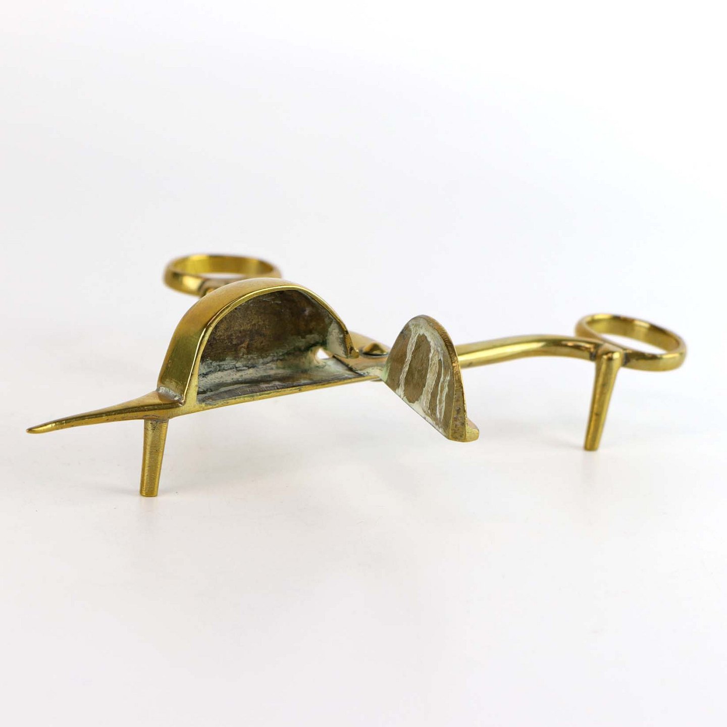 Ældre saks til slukning af lys fremstillet i messing. Saksen er pyntet med et prikformet monogram.