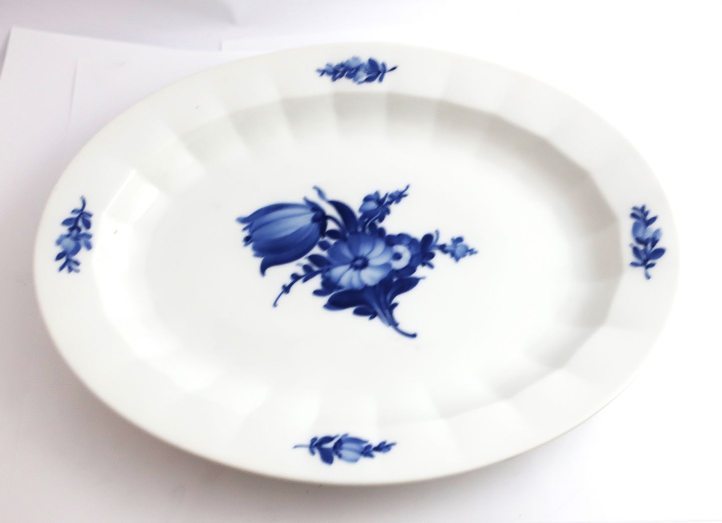 Royal Copenhagen. Blå blomst, kantet. Ovalt fad. Model 8538. Længde 34 cm. Bredde 25,5 cm. (2 sortering)