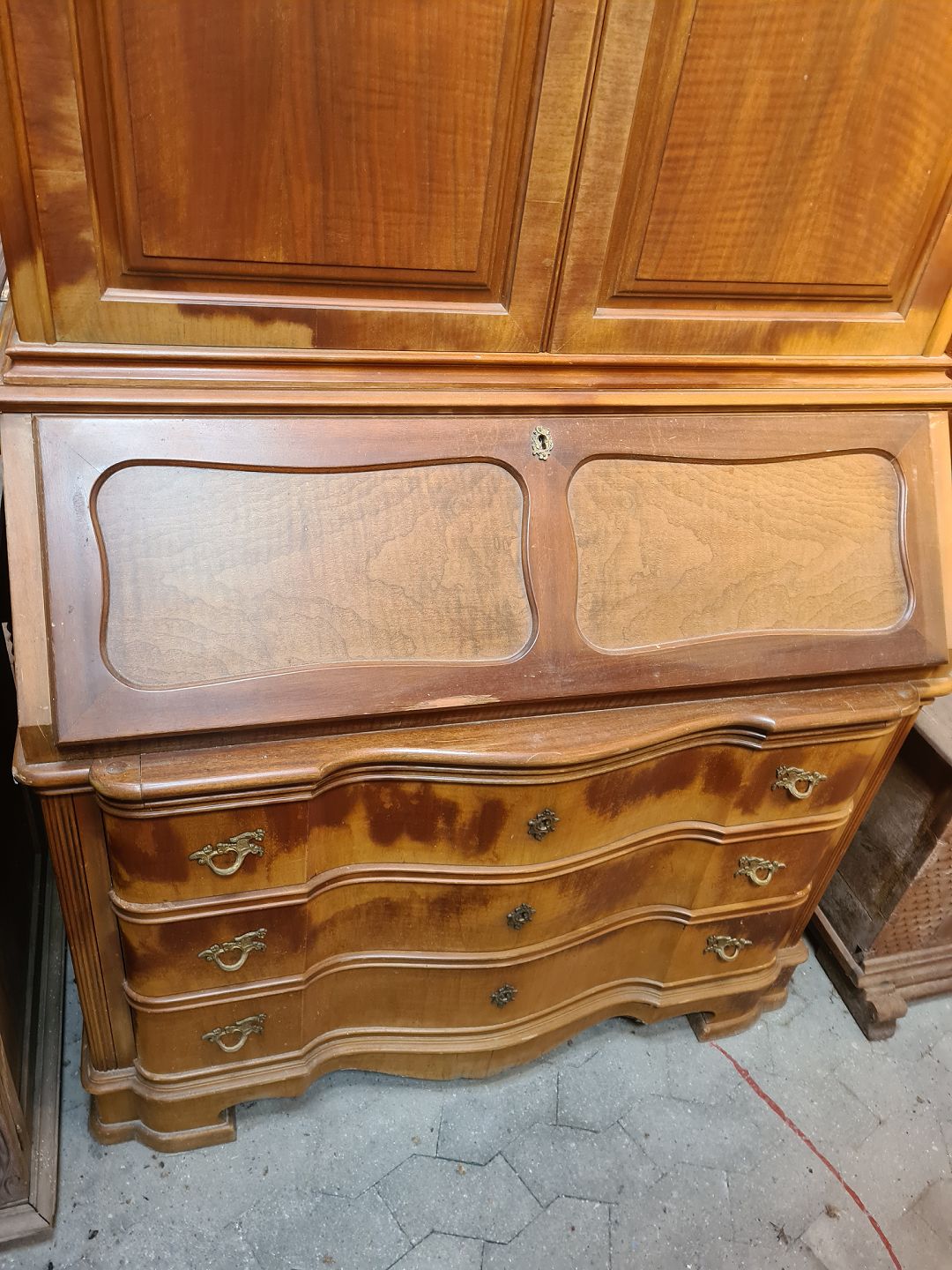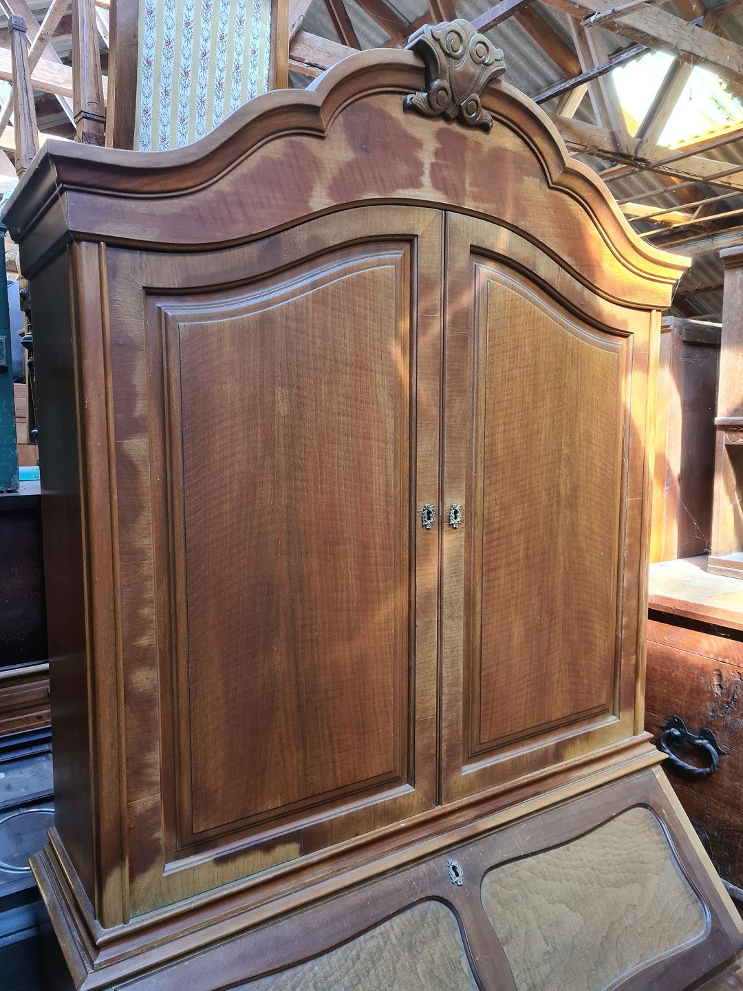 Chatol med overskab i fineret mahogni og bøgetræ, fra 1980erne.