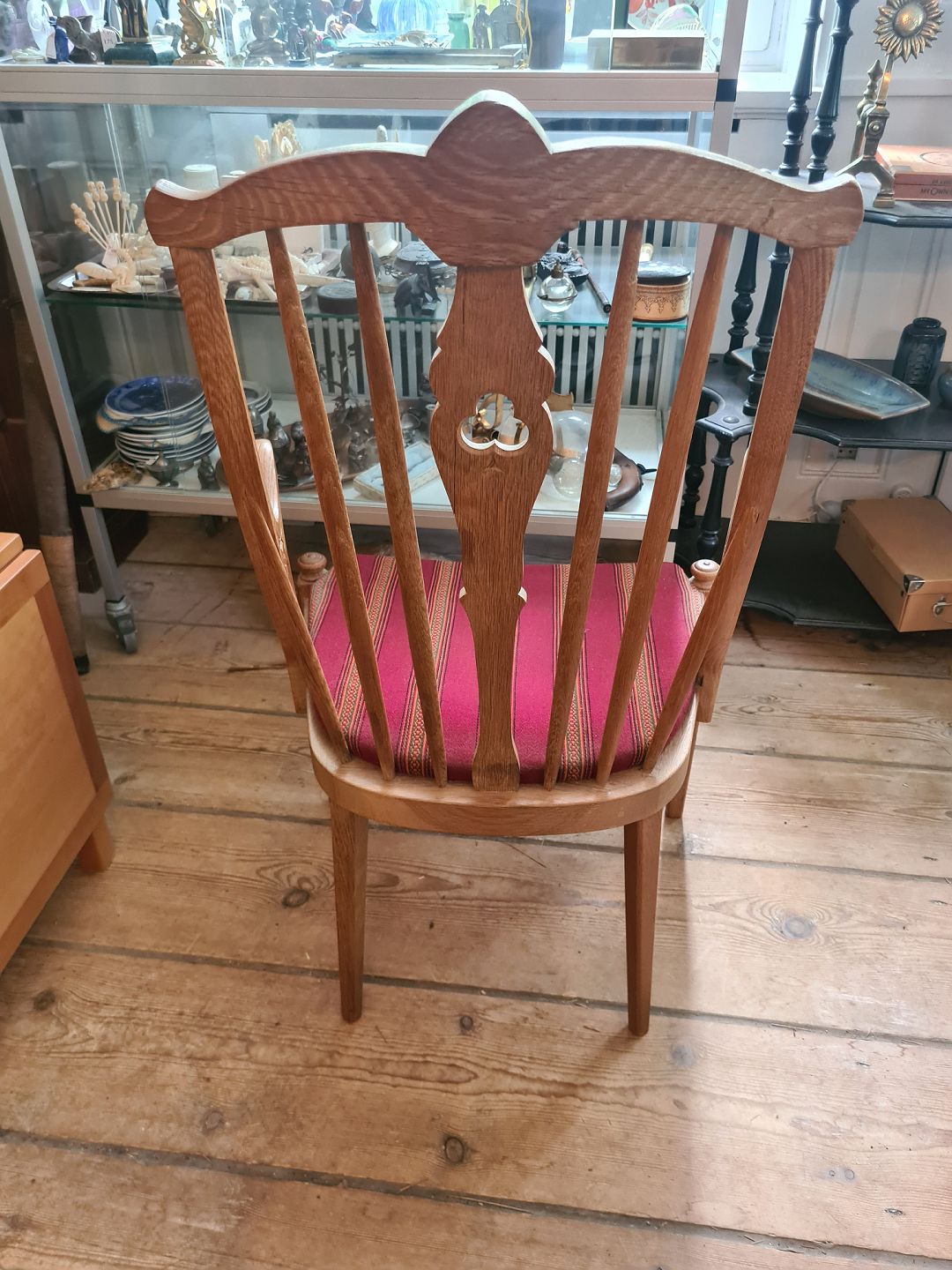 Armstol fra 1970´erne i syret eg. Fremstår pæn og udmærket stabil dog med en lille skade på udskæringen (billede).