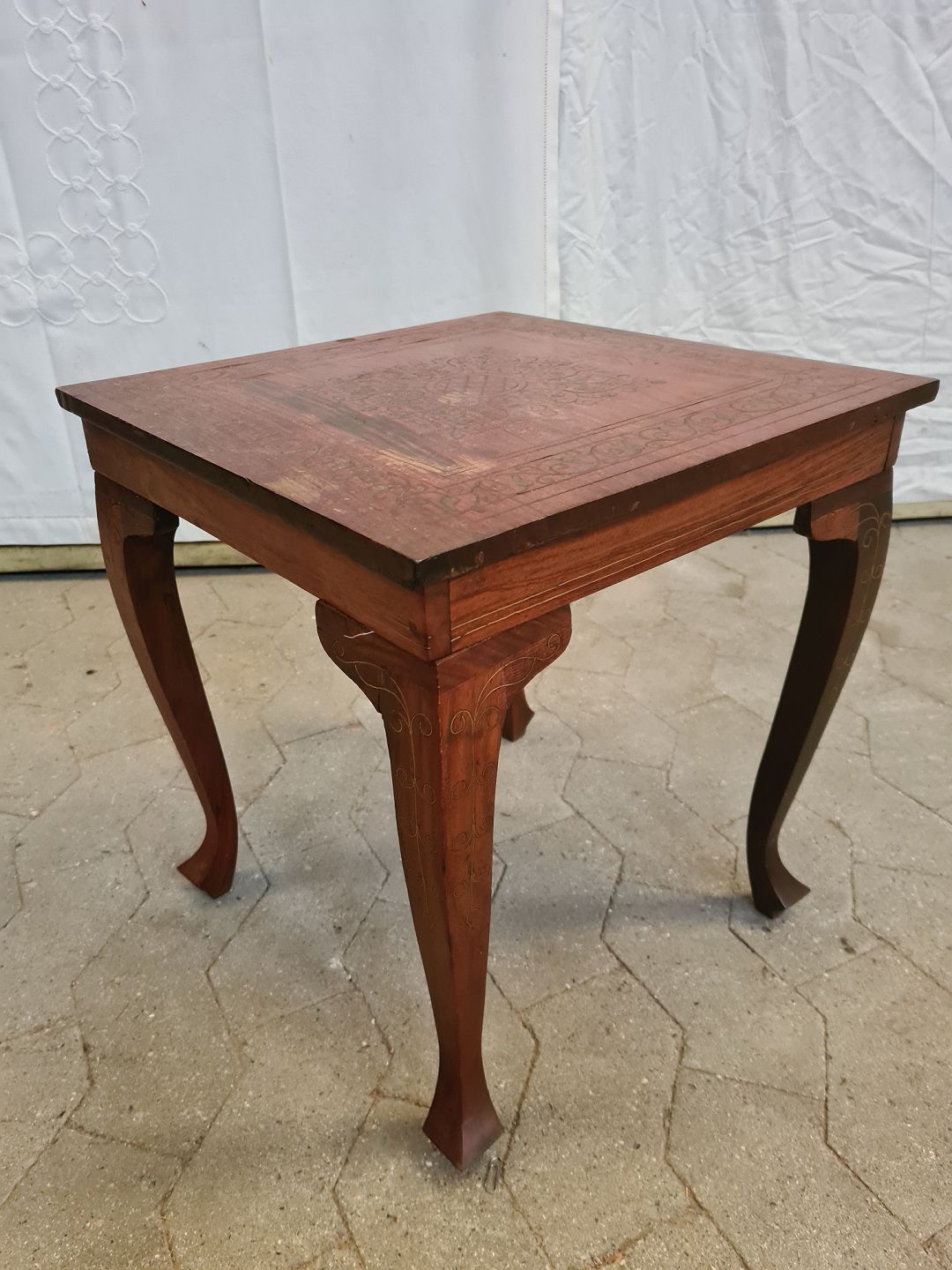 Lampebord i massivt træ med messing indlæg, fra 1990erne.