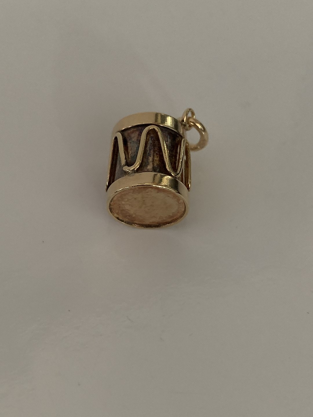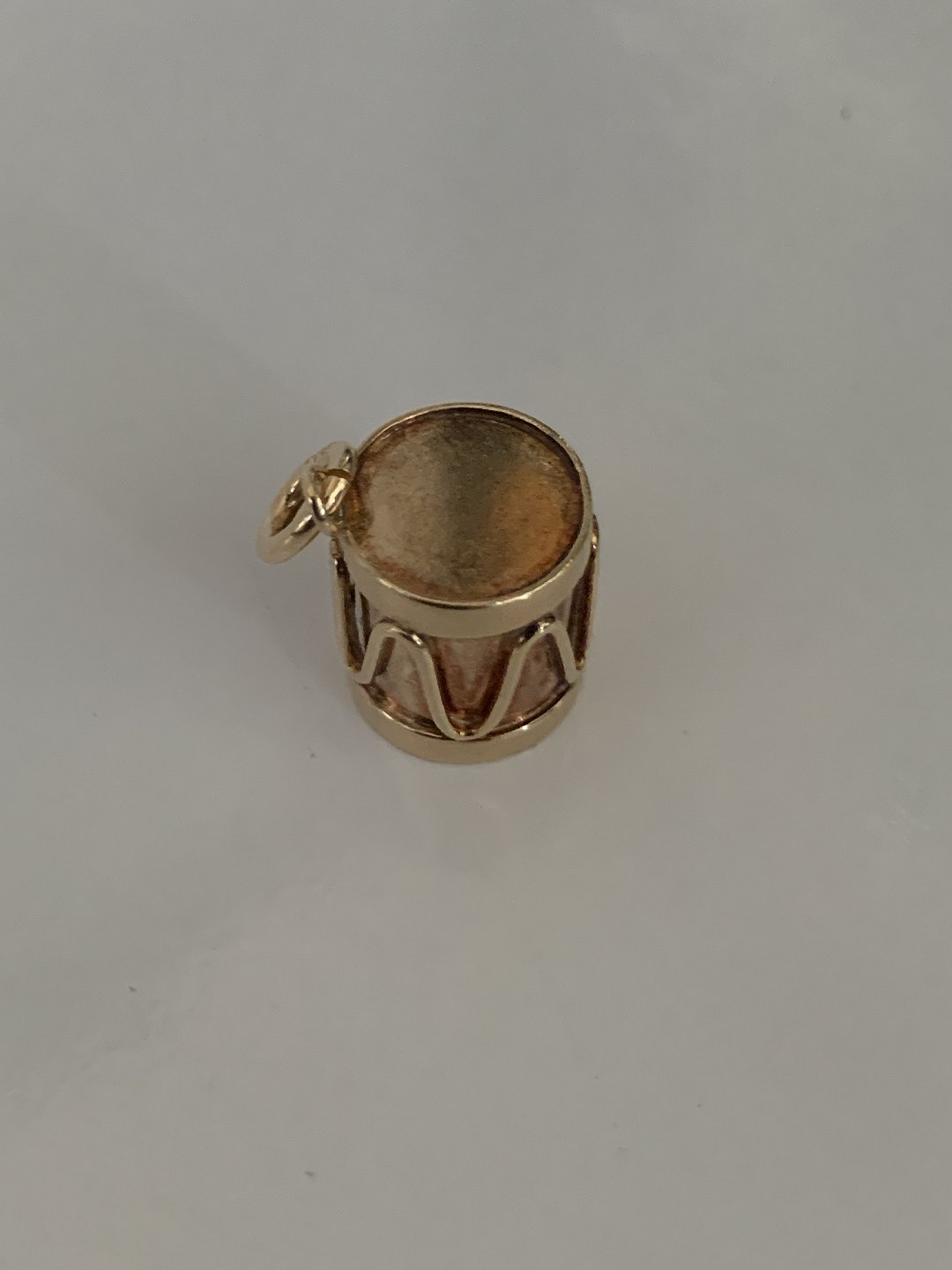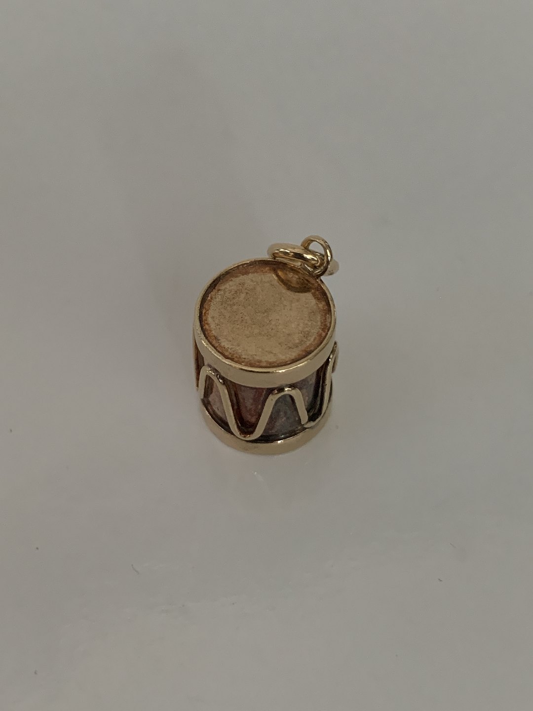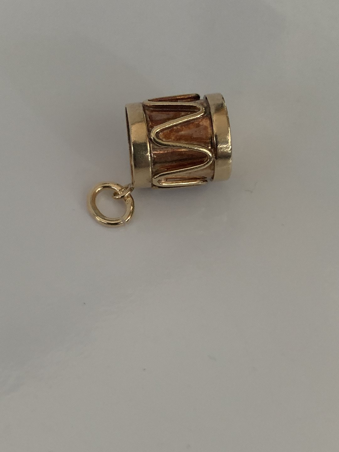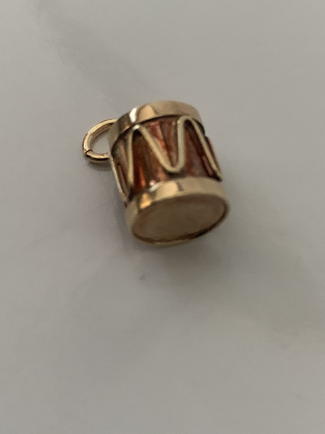 Charm til armbånd i 14 karat guld, stemplet 585. Lille tromme.