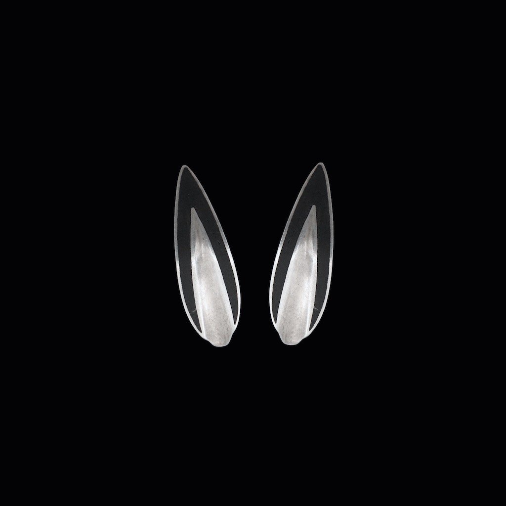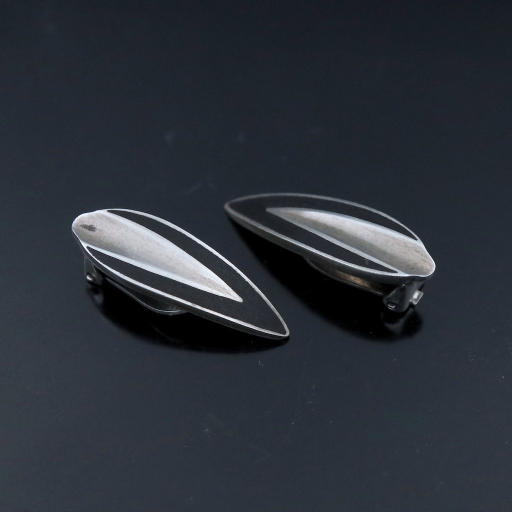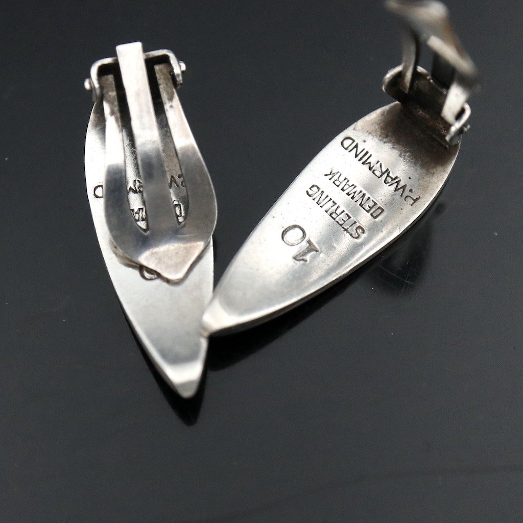 Poul Warmind. Øreklips i sterlingsølv med emalje.