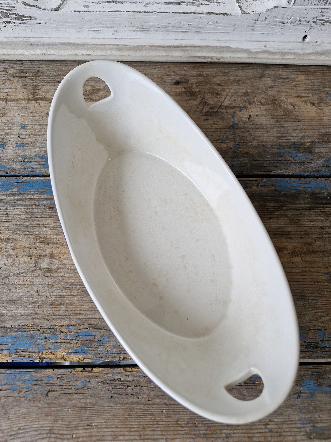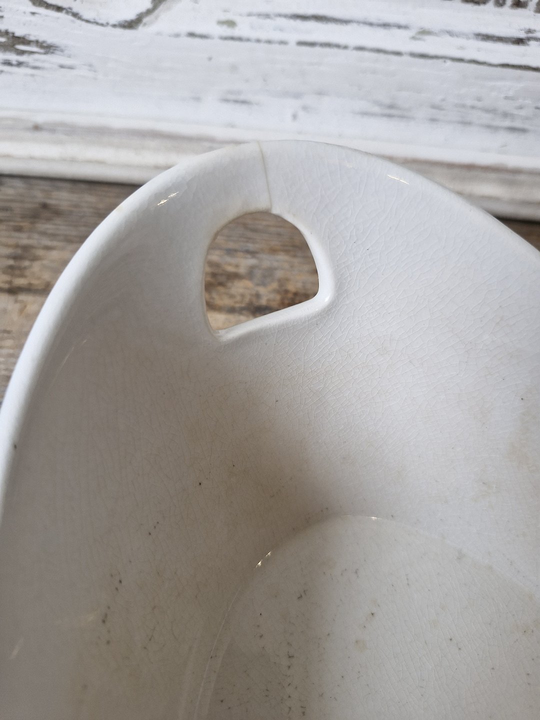 Fremstår med hårrevne ved den ene hank samt lidt misfarvning indvendigt i skålen.