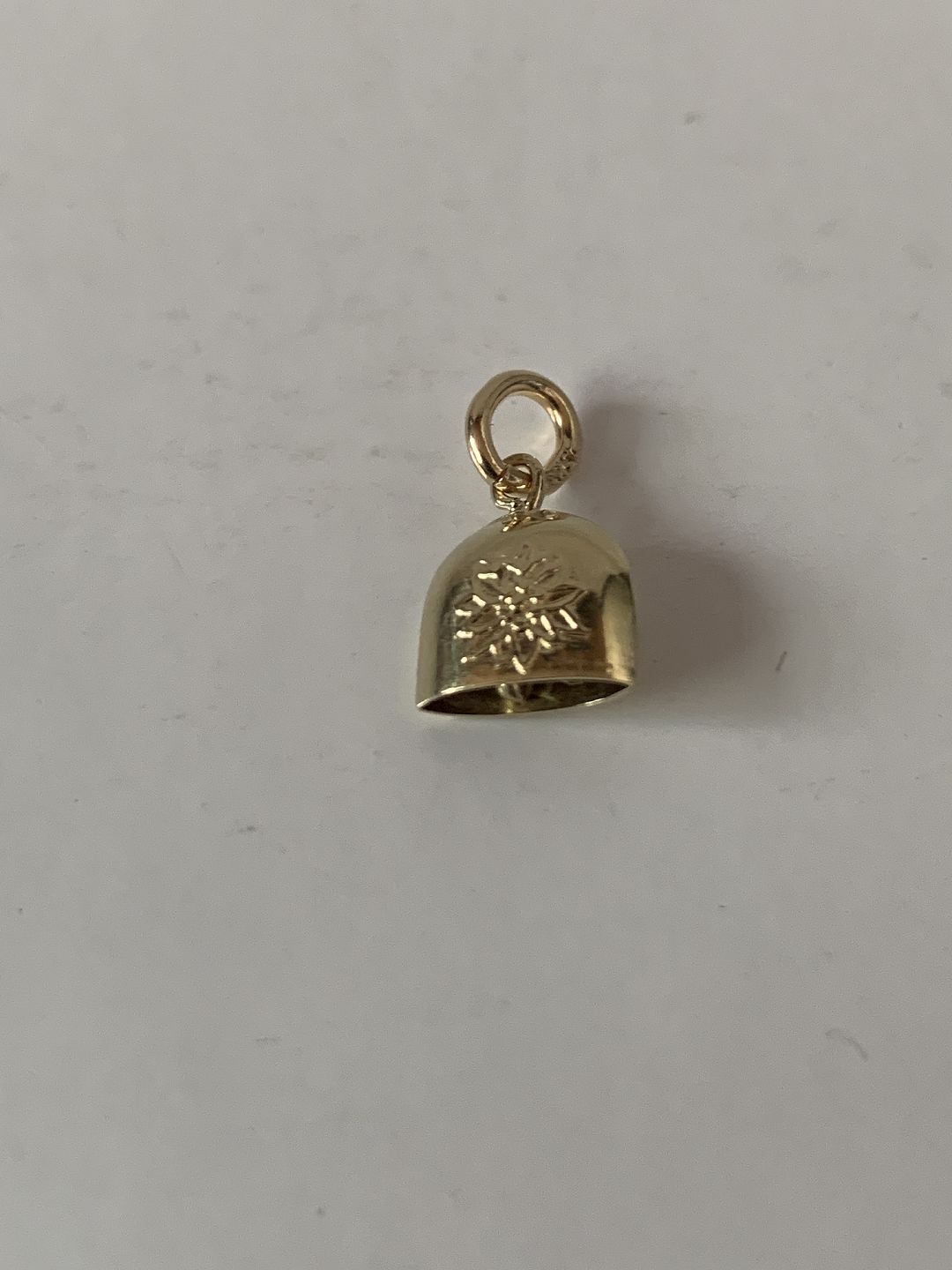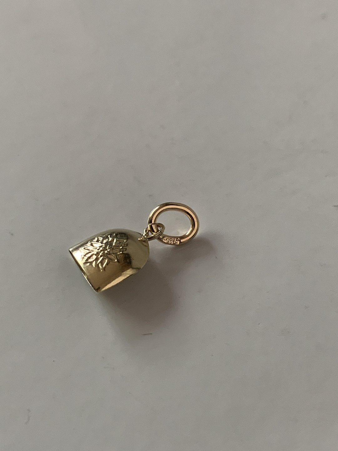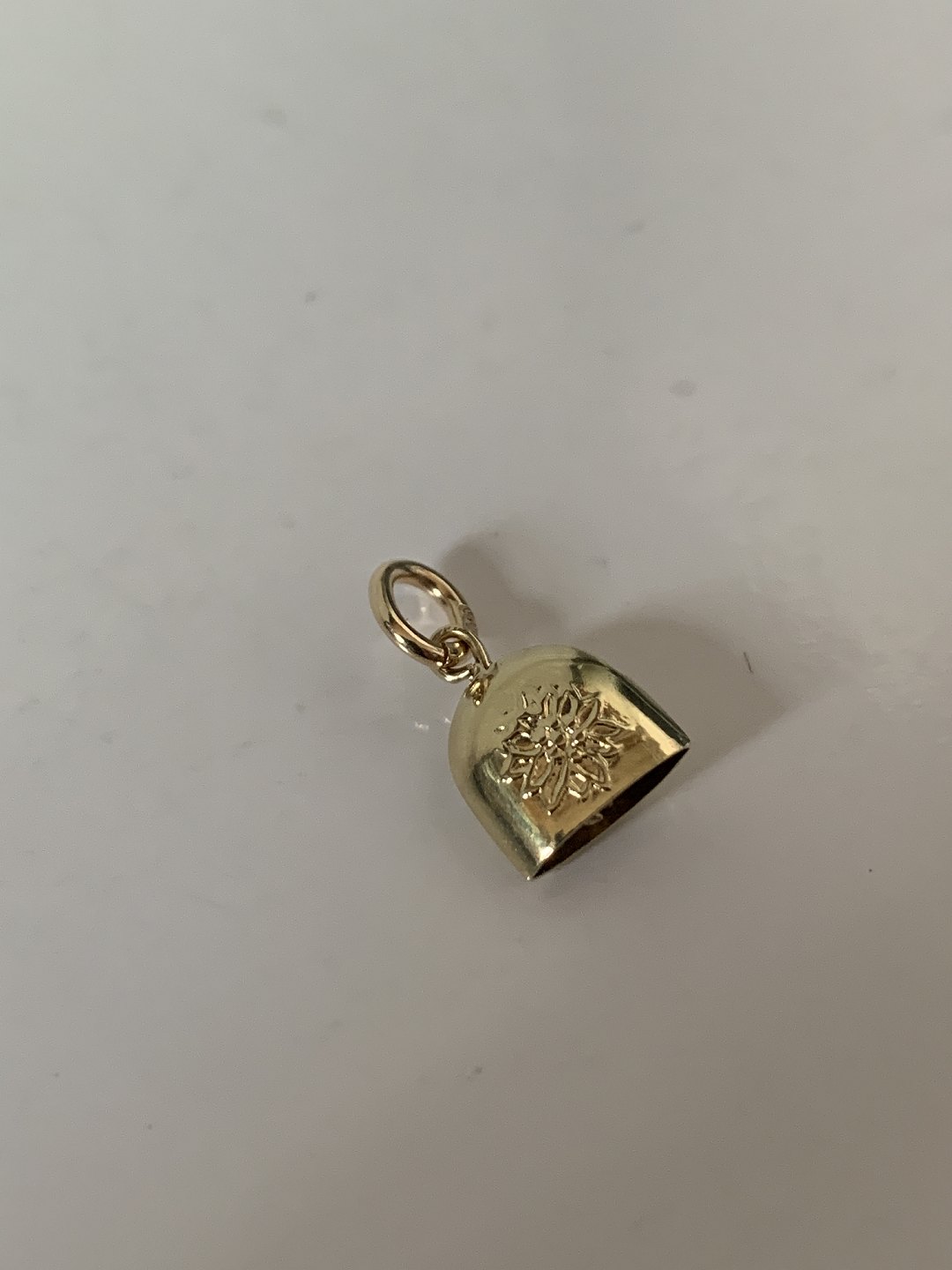 Beautiful and discreet pendant, designed as a bell in 14 carat gold. Suitable for a necklace or as a pendant in a bracelet. Beautiful minimalistic and classic piece of jewelry that has been used for many years.